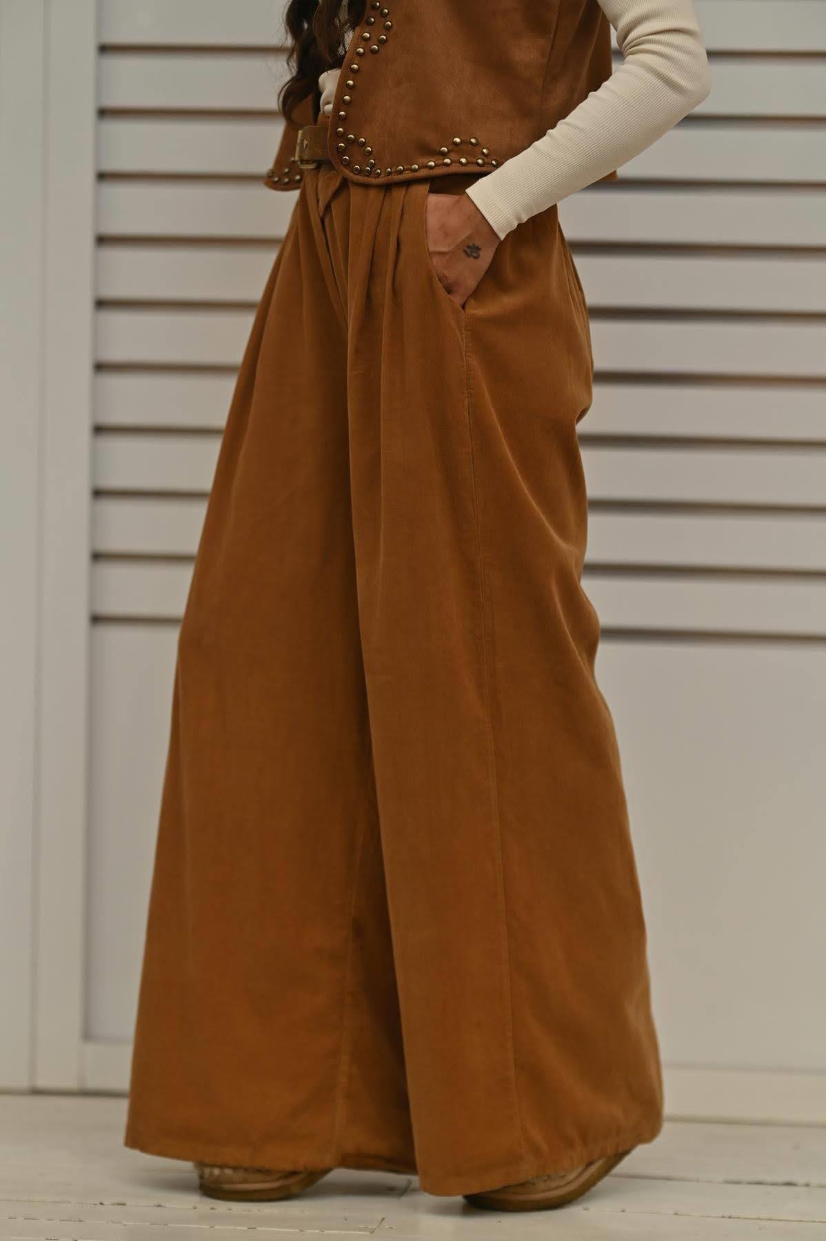 Hardal Rengi Düğme Detaylı Kadife Pantolon (KP-FAL-040-PA-HAR-STD)