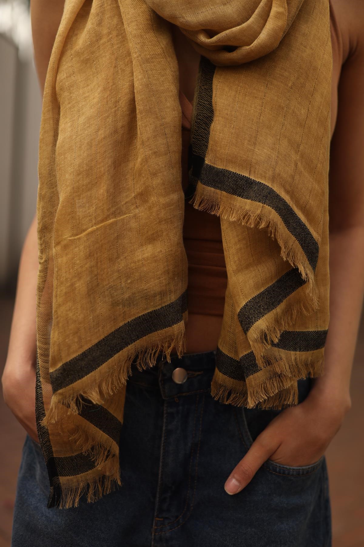 Hardal Rengi Sim Çizgili Pamuk Şal (ASL-ZH-041-PA-HAR-STD)