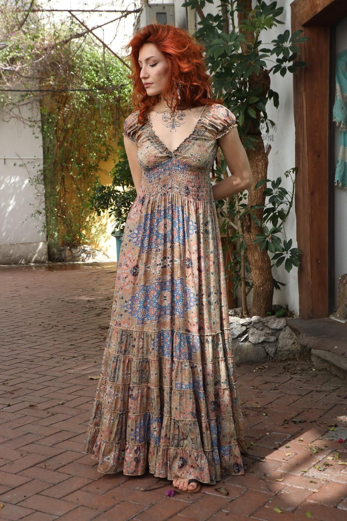 Indigo Blue Patterned Silk Dress (KE-RMR-026-IP-IND-STD)