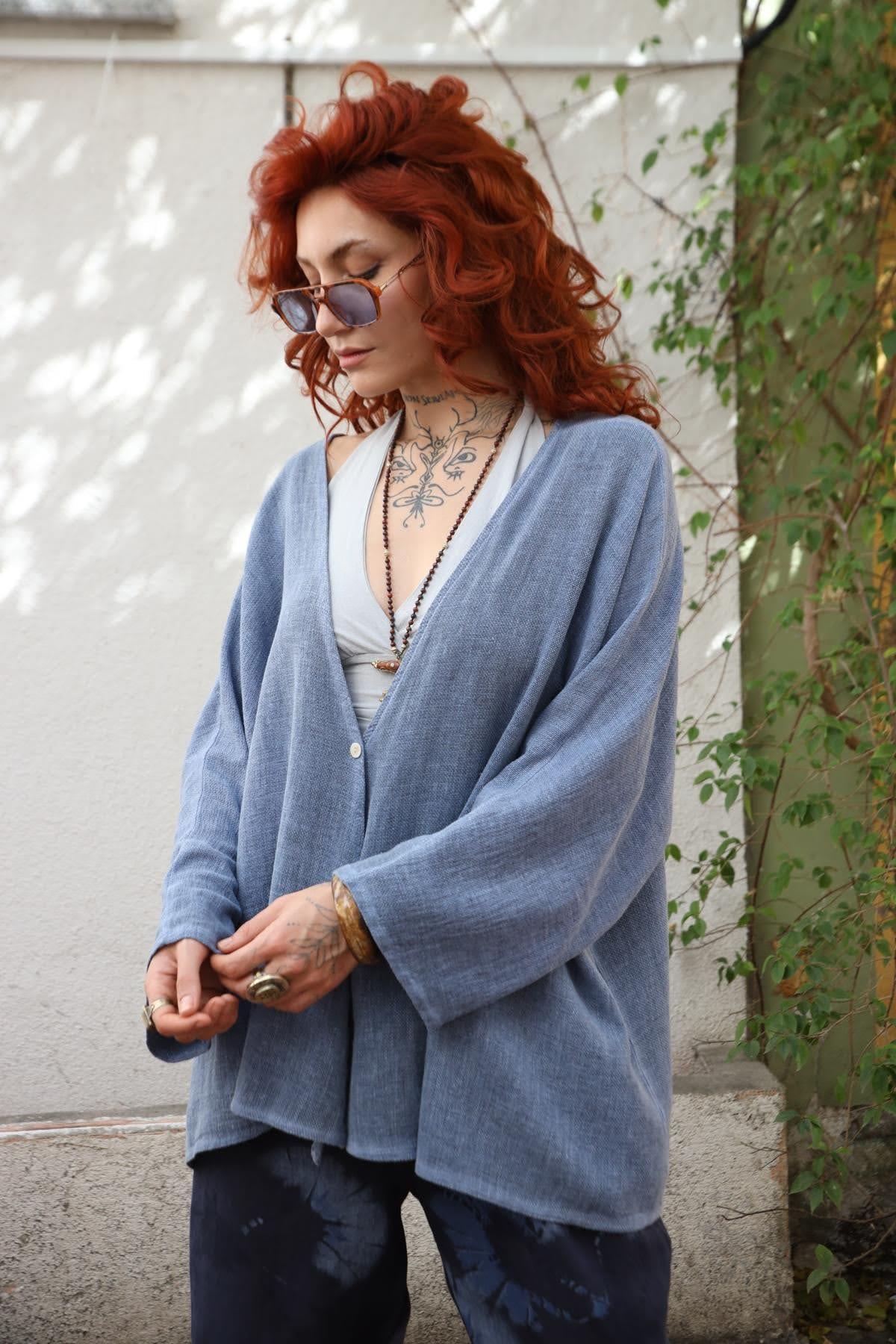 Standard size, fits size range 36-48. Model Height and Weight: 168 cm, 50 kg Fabric: 50% Linen, 50% Cotton