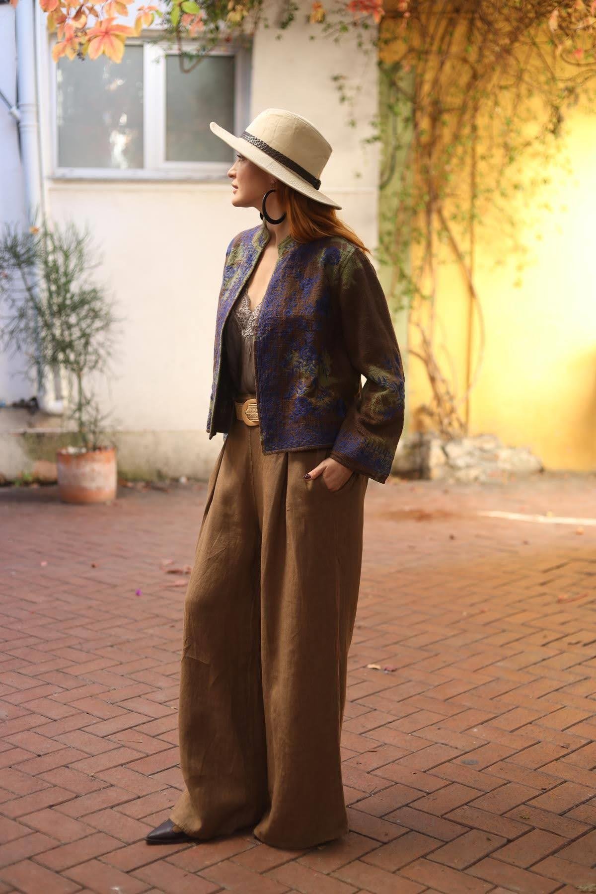 Kahverengi Batikli Nakışlı Ceket