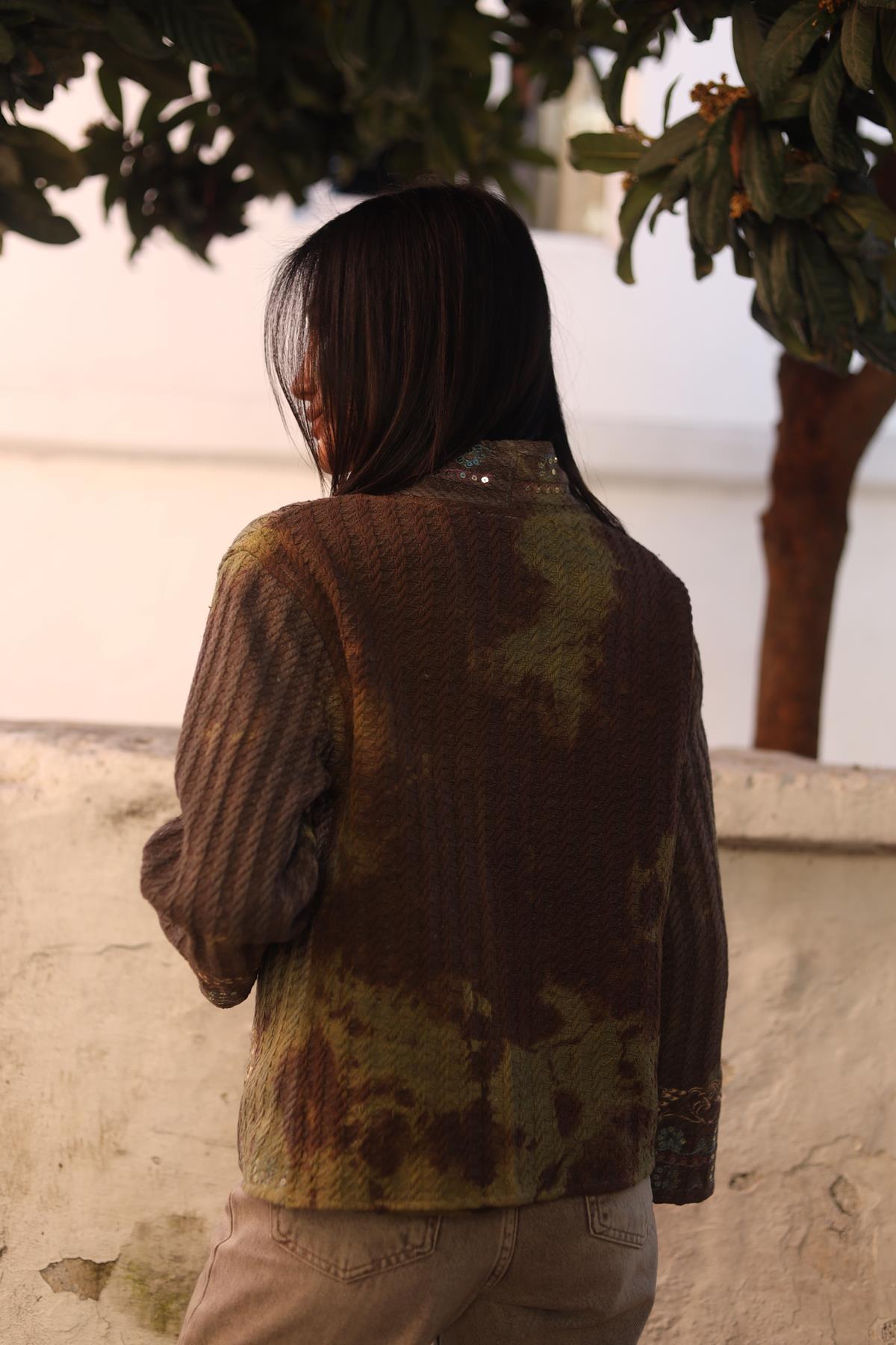Kahverengi Batikli Payet Nakışlı Ceket (KC-AS-024-PA-KA-STD)