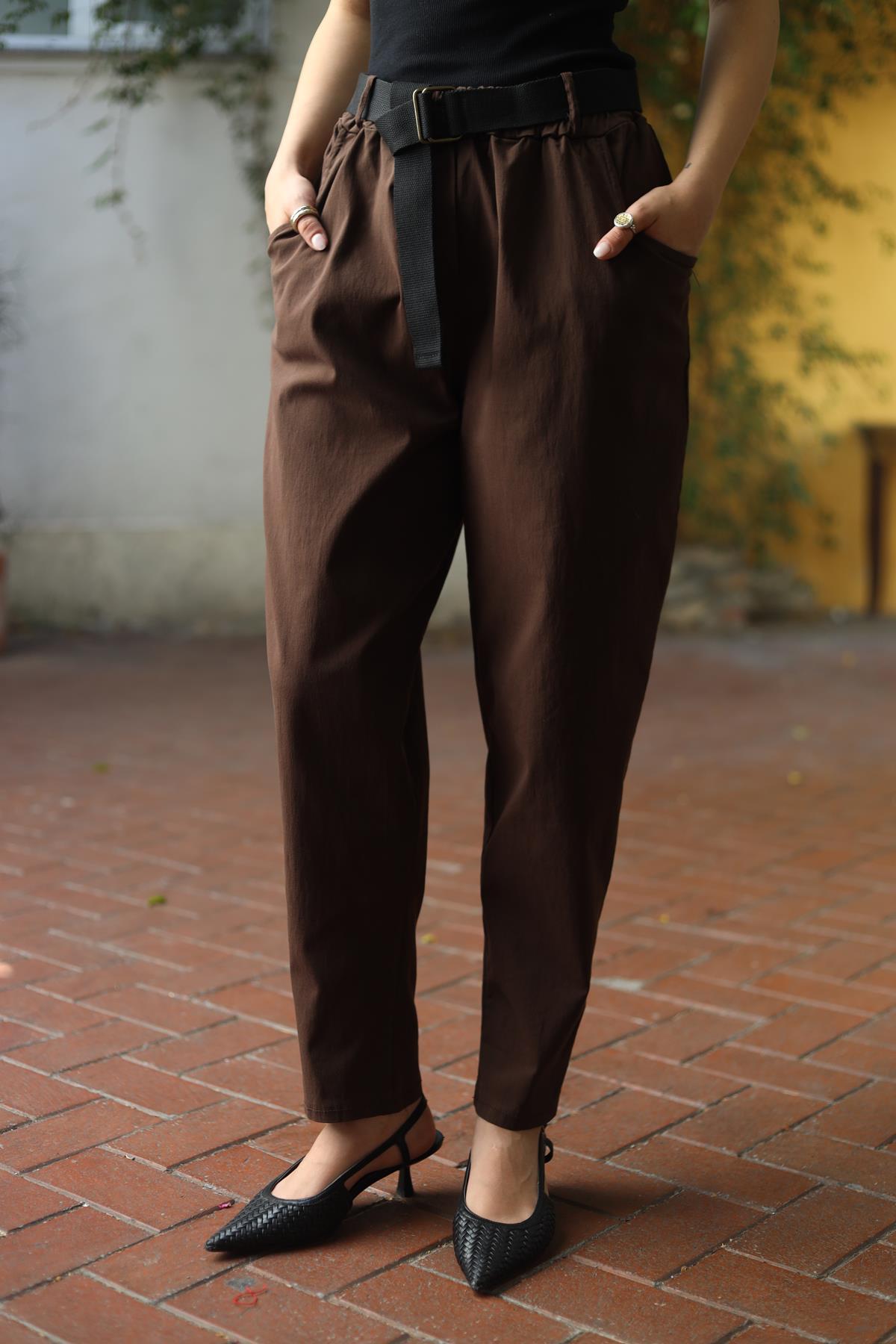 Kahverengi Beli Lastikli Likralı Pantolon (KP-FAL-038-VI-KA-STD)