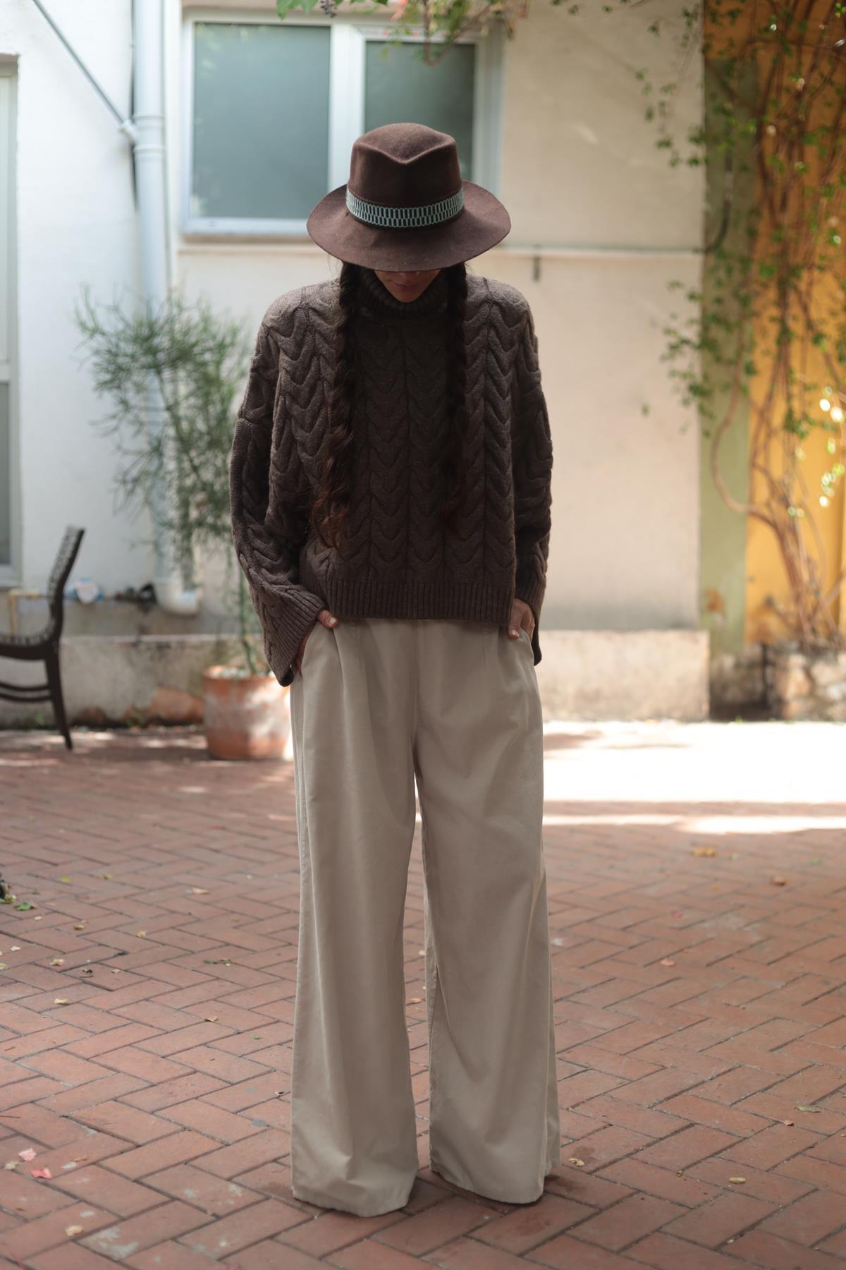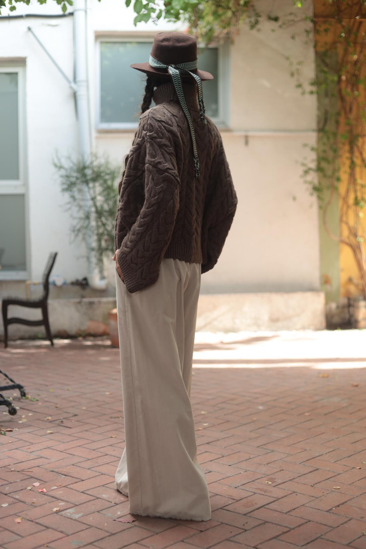 Kahverengi Boğazlı Örgü Desenli Salaş Kazak (KKZK-SSA-001-AK-KA-STD)