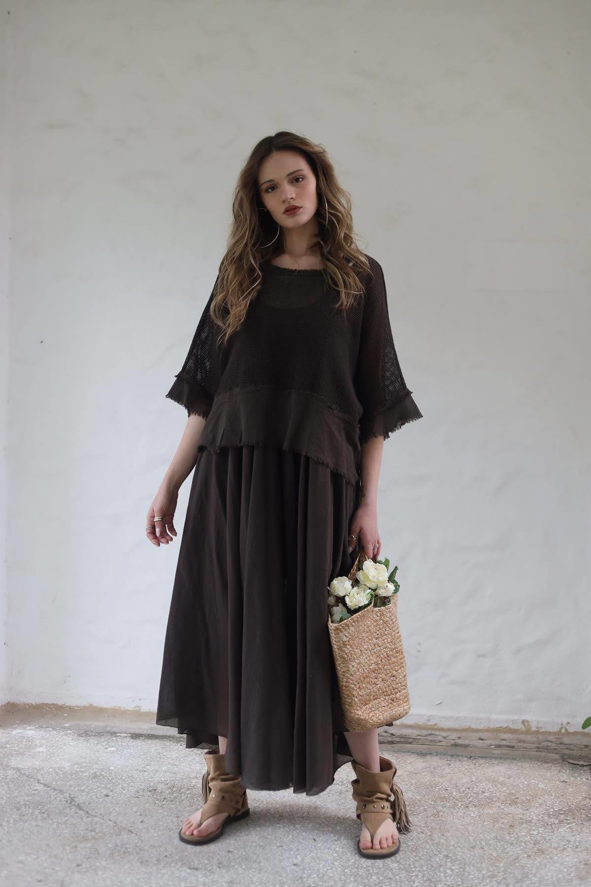 Kahverengi File Bluz Detaylı İp Askılı Elbise (KE-FAL-029-PA-KA-STD)