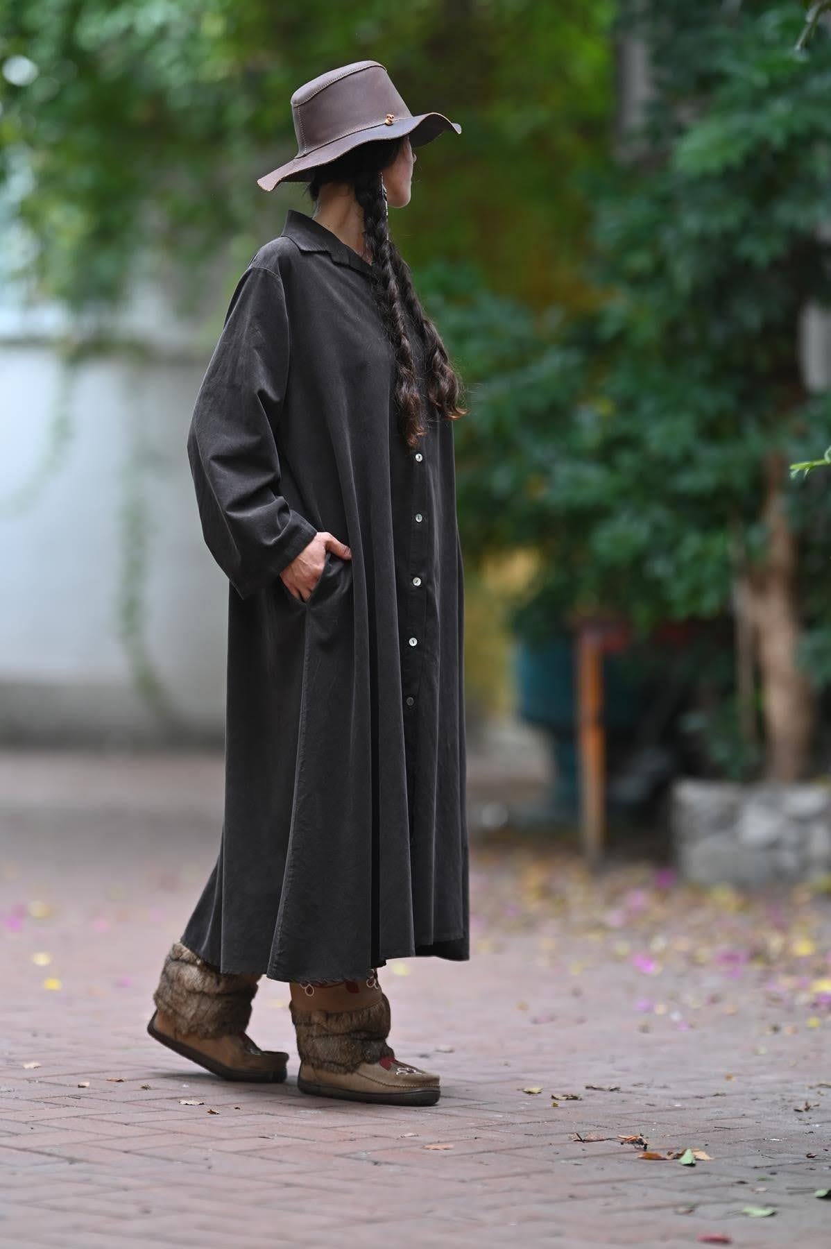 Kahverengi Kadife Salaş Gömlek Elbise