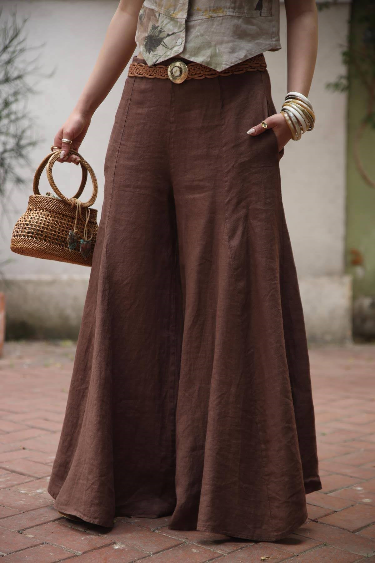 Kahverengi Keten Pantolon Etek