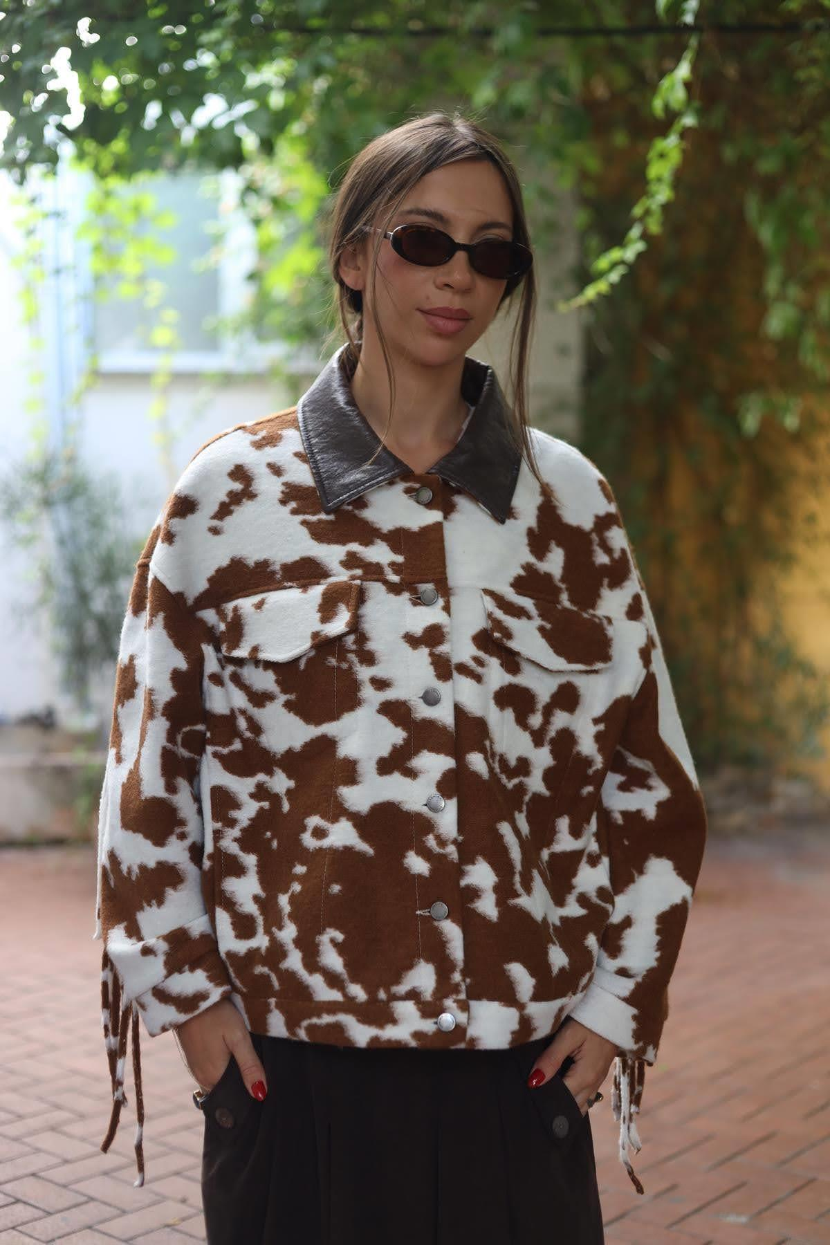 Kahverengi Kolları ve Sırtı Püsküllü Keçe Ceket