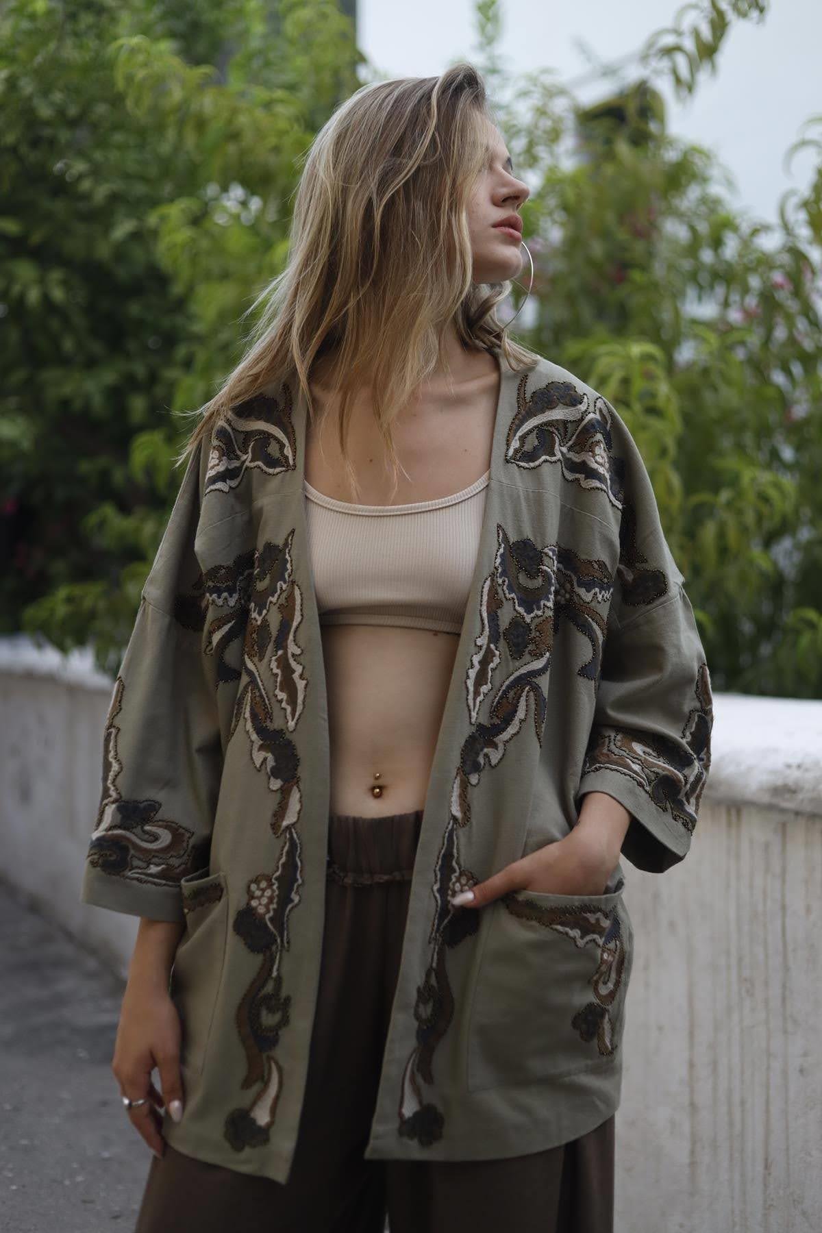 Khaki Authentic Embroidered Short Caftan