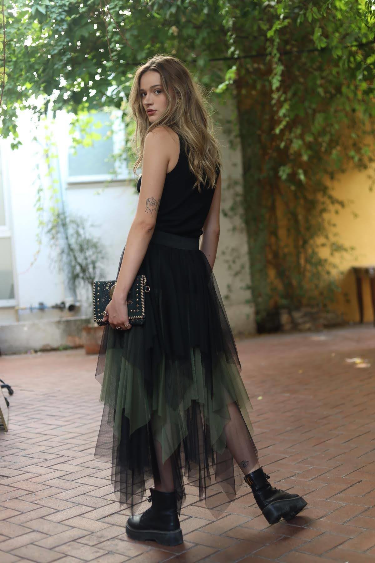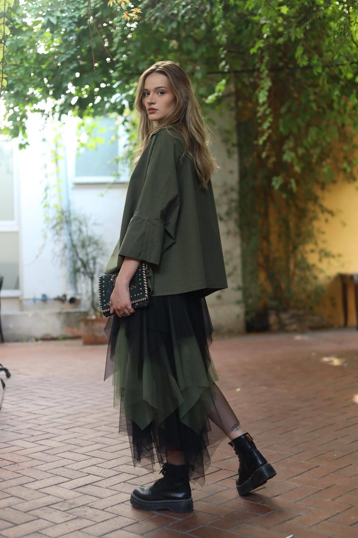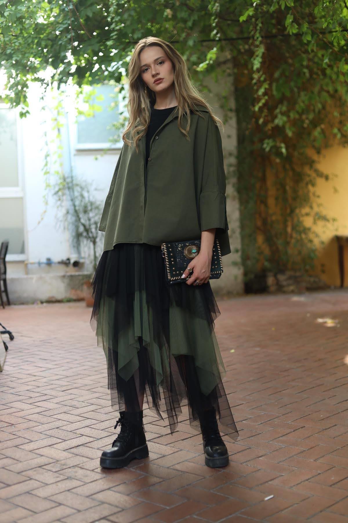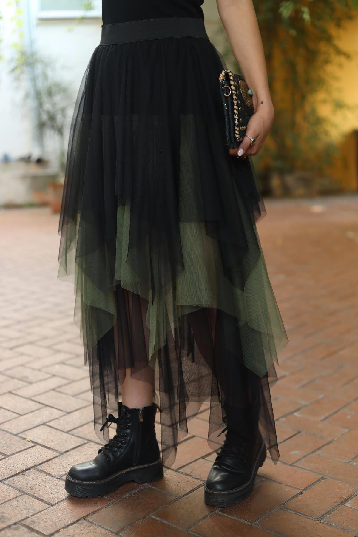 Khaki Double Color Layered Tulle Skirt (KET-LAM-006-VI-HA-STD)