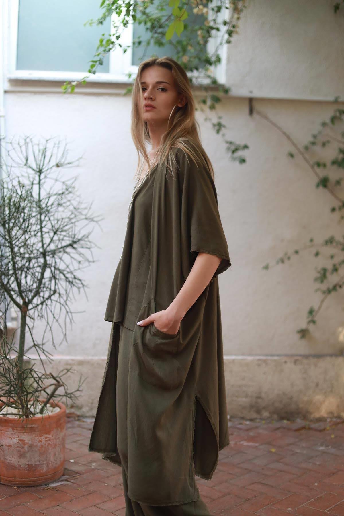 Khaki Fringed Short Sleeve Caftan (KKFN-LAM-001-KTN-HA1-STD)