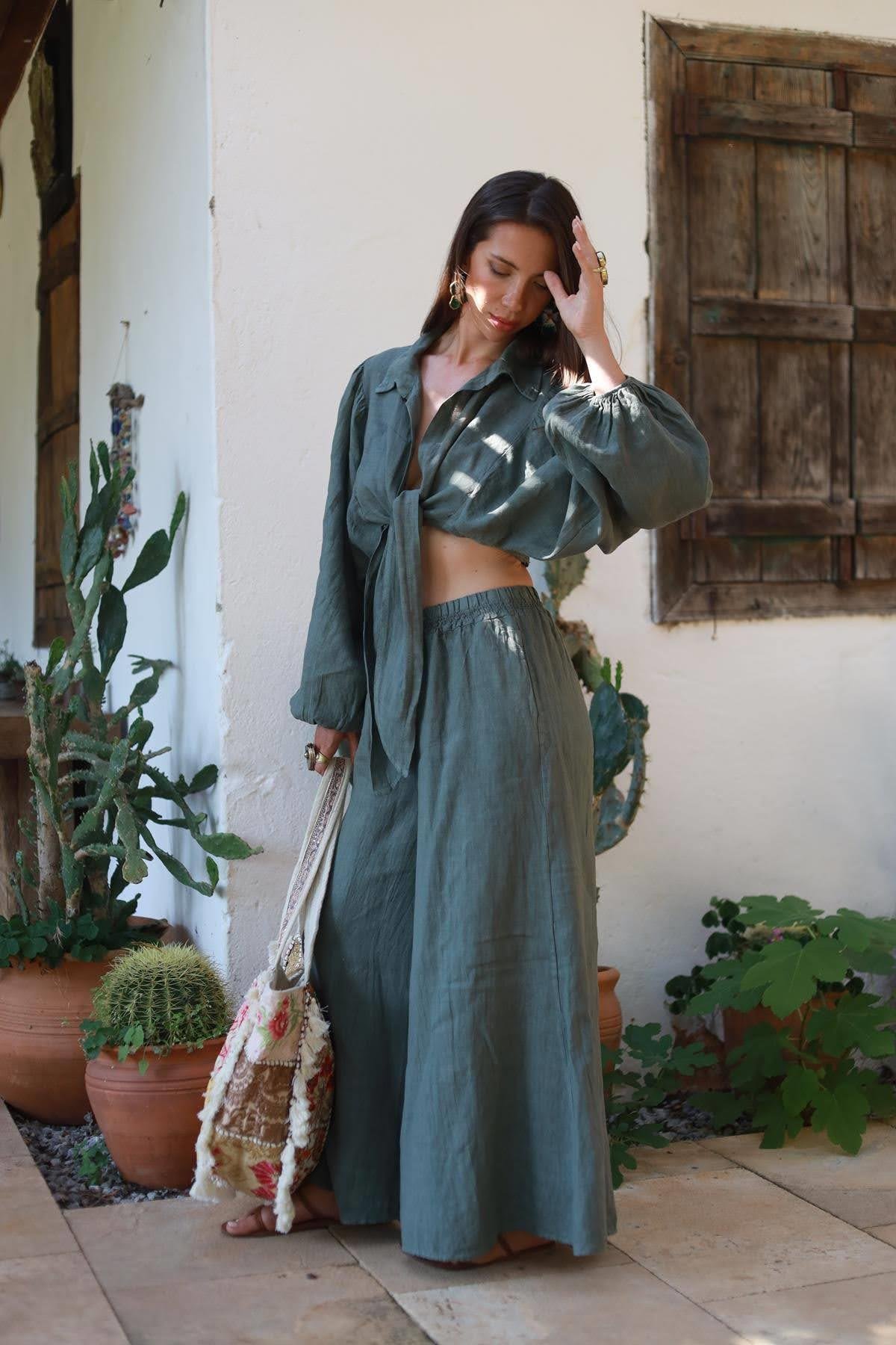 Khaki Linen Bolero and Pants Set (KTKM-FAL-004-KTN-HA-STD)