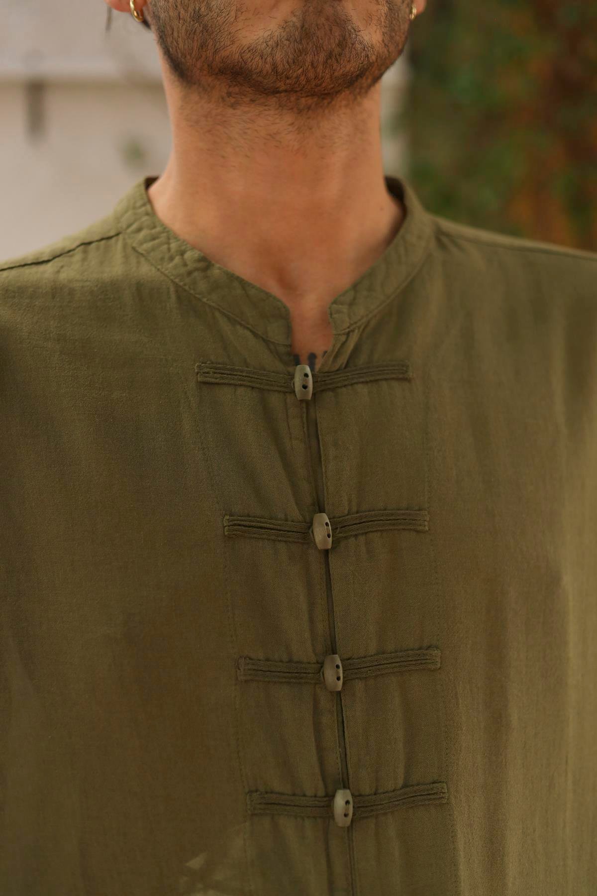 Khaki Mandarin Collar Men's Shirt (EG-TO-009-PA-HA-S)