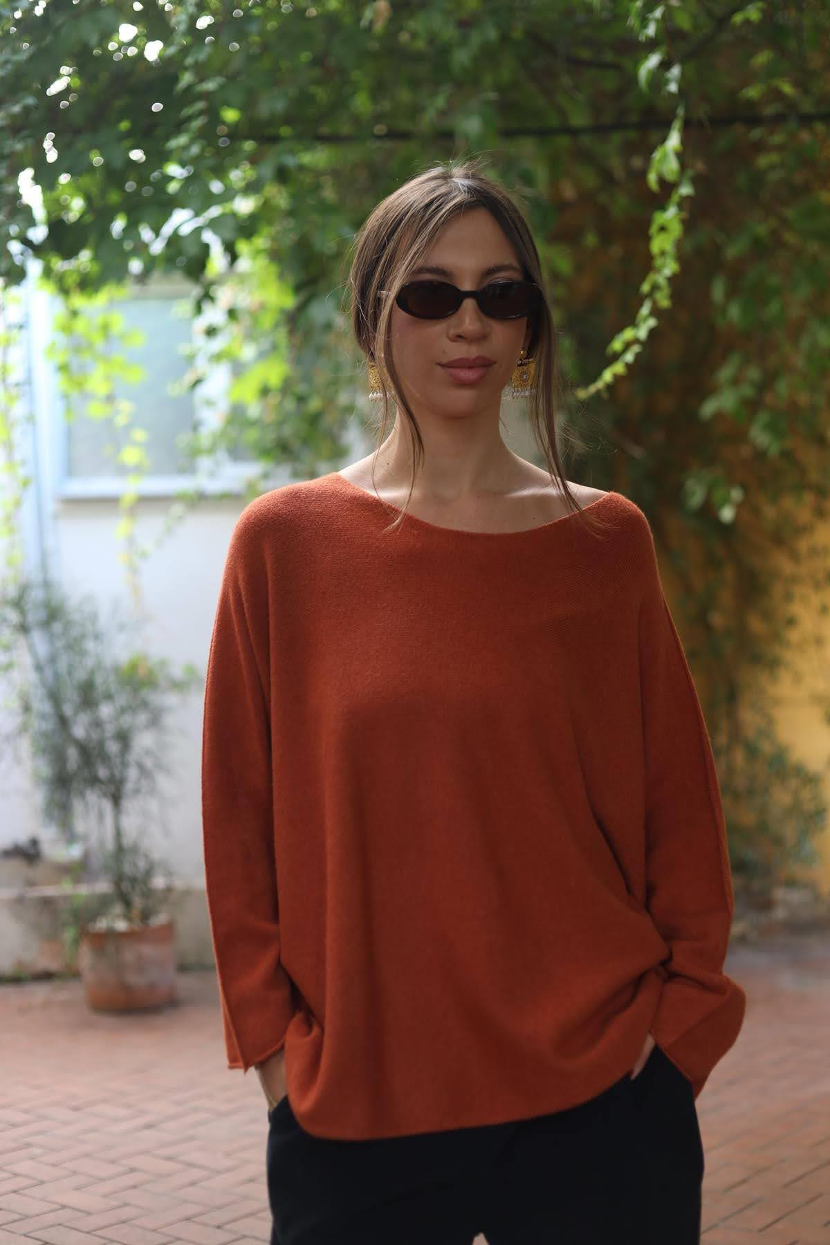 Kiremit Rengi Bisiklet Yaka Dikişsiz Bluz