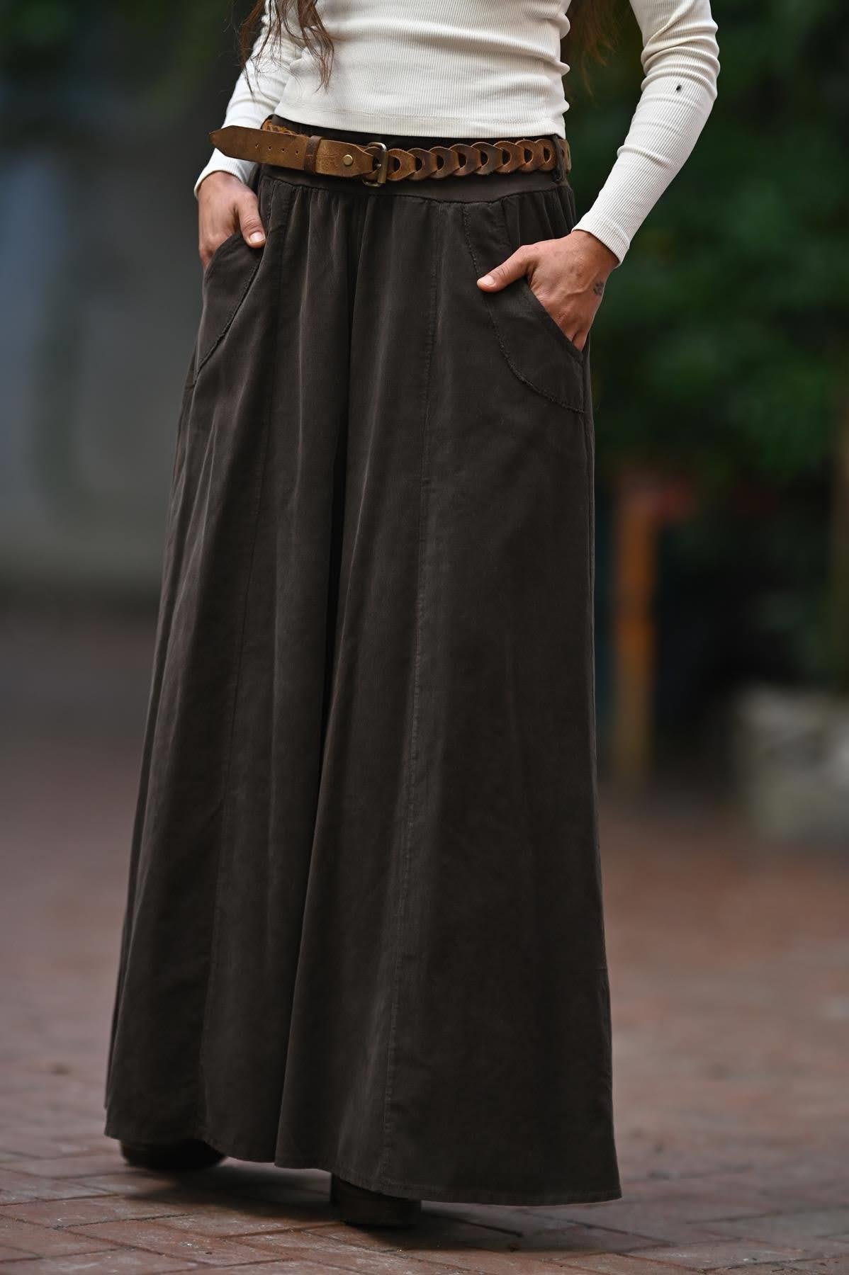 Koyu Kahverengi Cebi Dikiş Detaylı Kadife Pantolon