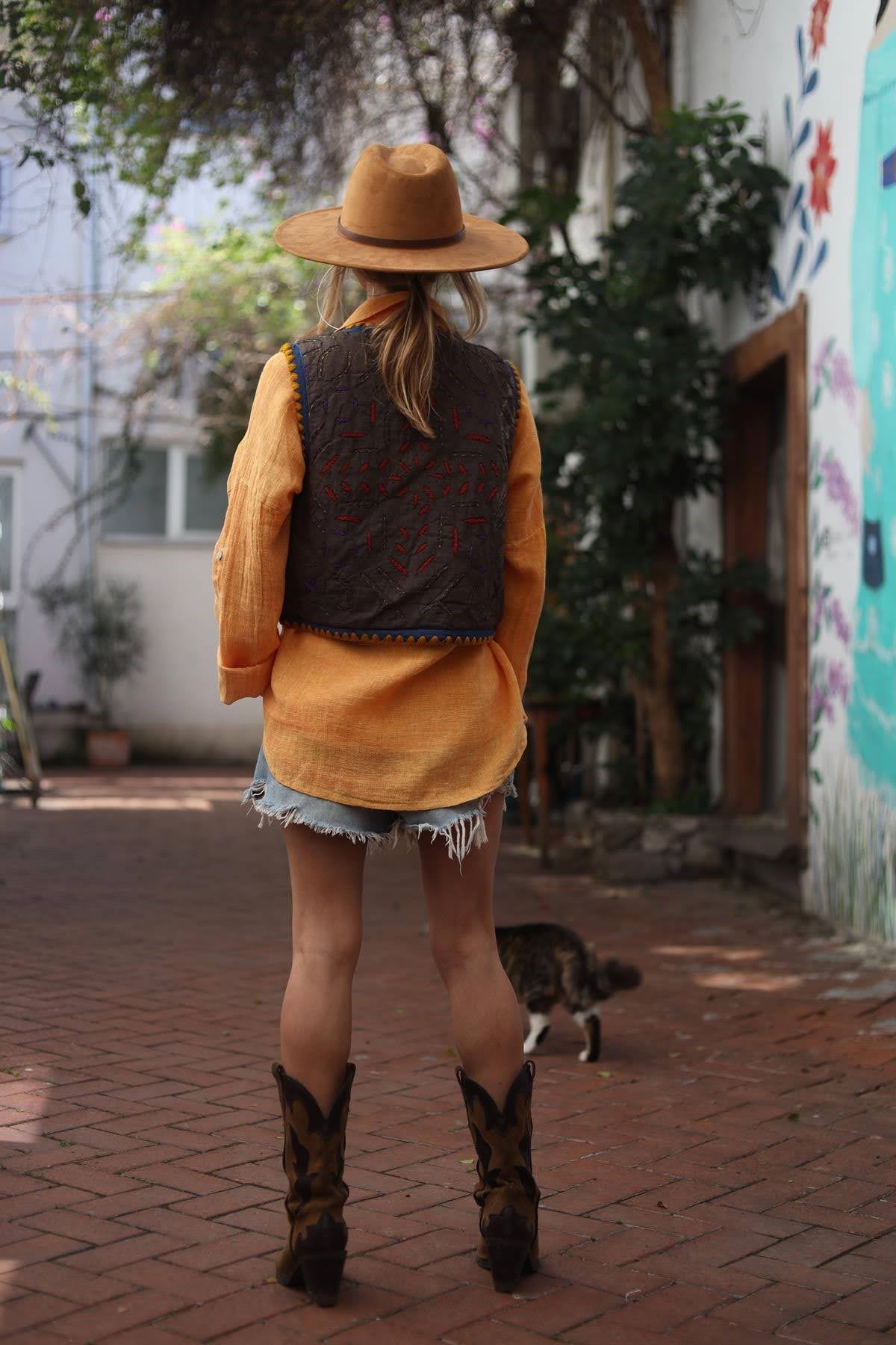 Koyu Vizon Deniz Kabuğu Püsküllü Yelek (KY-SIT-001-PA-KVI9-STD)
