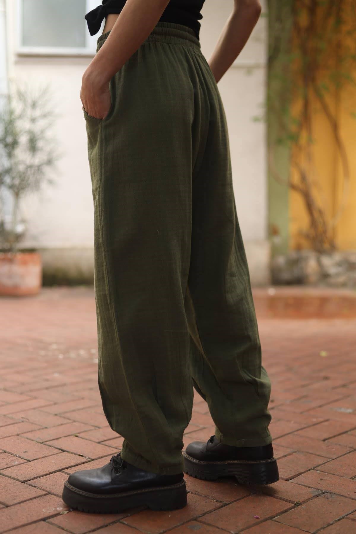 Koyu Yeşil Beli Lastikli Pantolon