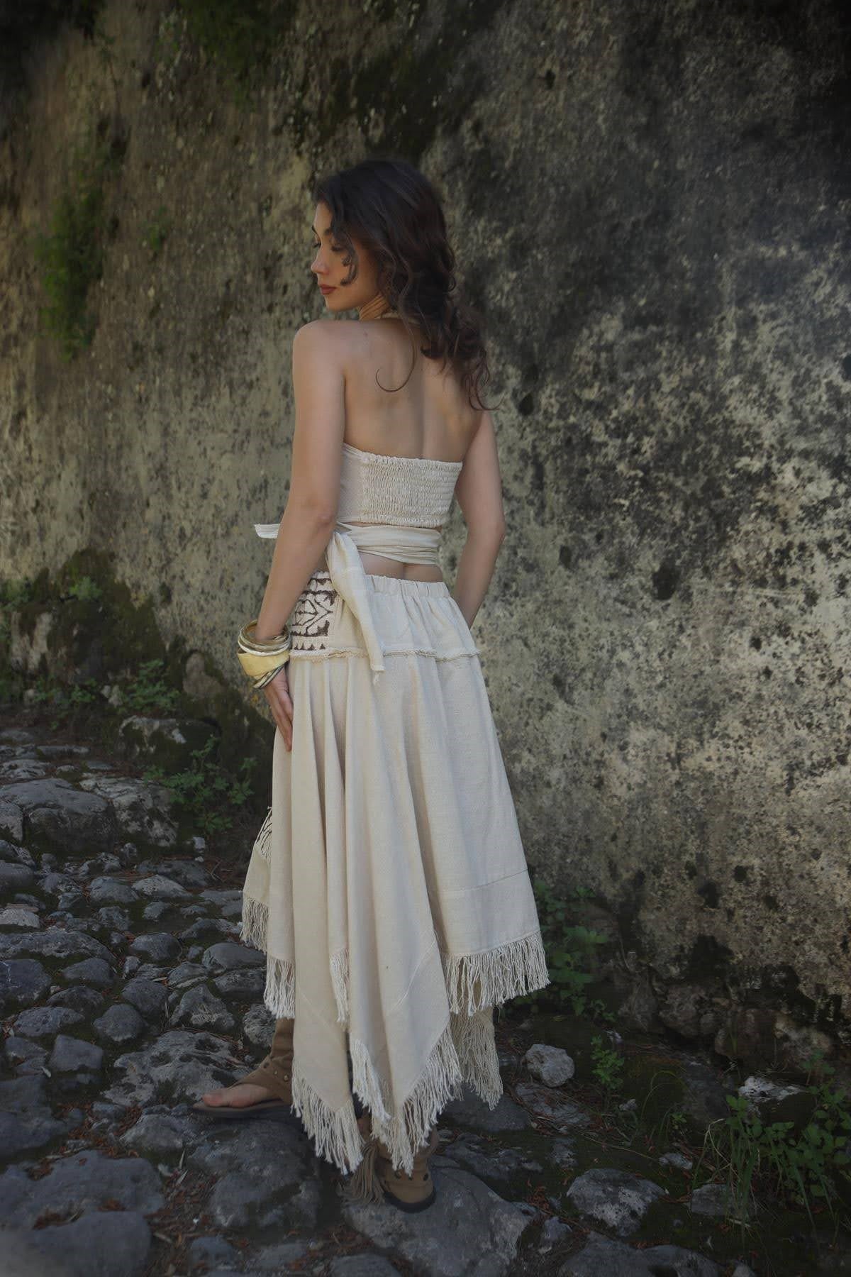 Krem Rengi Asimetrik Kesim Püsküllü Bohem Etek (KET-RMR-012-PA-KR2-STD)