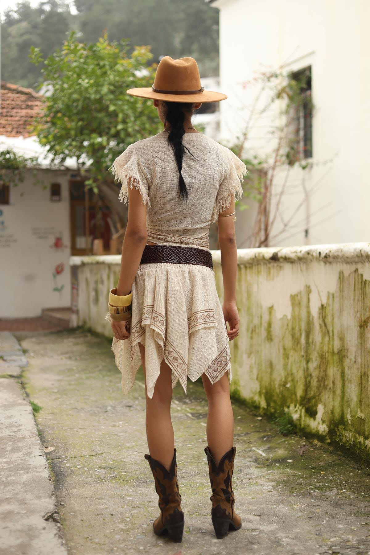 Krem Rengi Asimetrik Parçalı Jüt Pamuk Etek