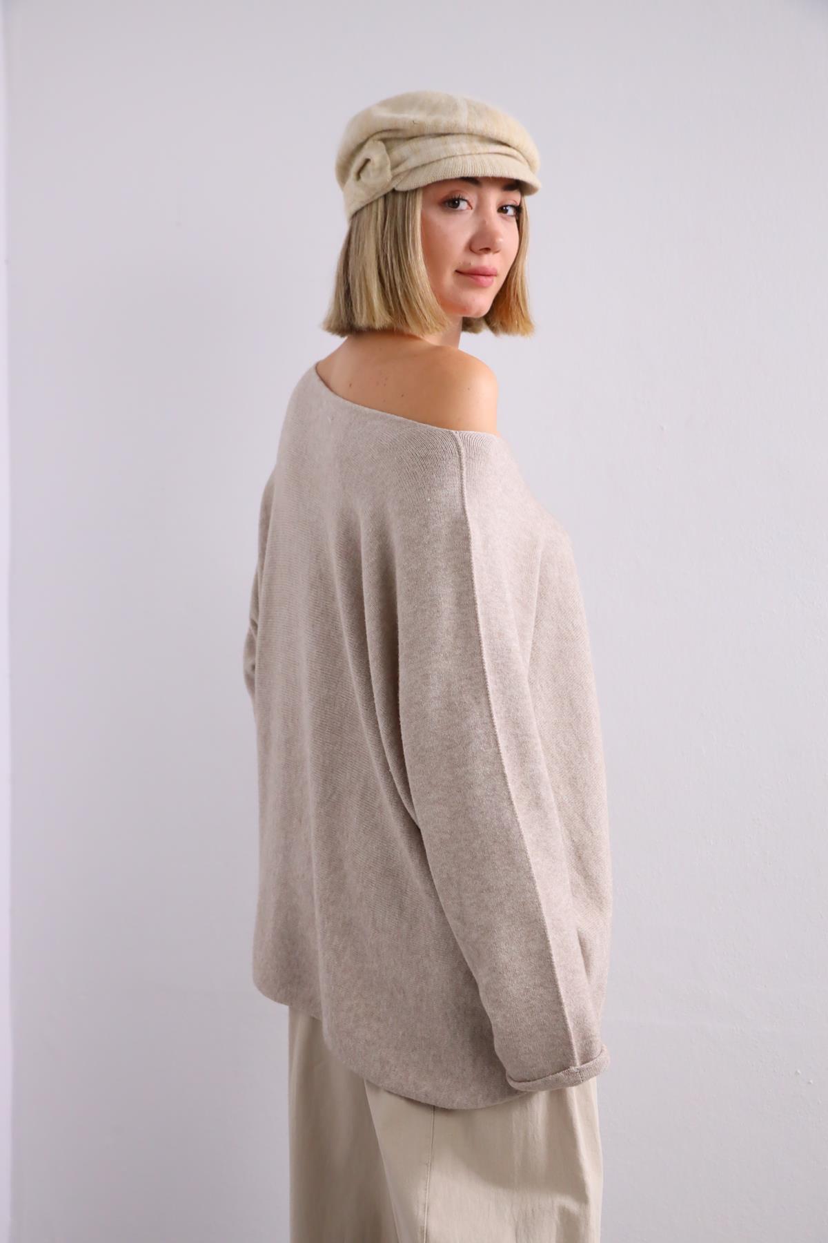 Krem Rengi Bisiklet Yaka Dikişsiz Kazak