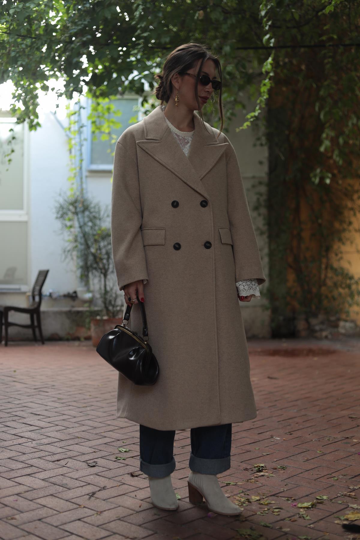 Krem Rengi Düğmeli Keçe Kaban (KKBN-CMN-003-PO-KR-36)