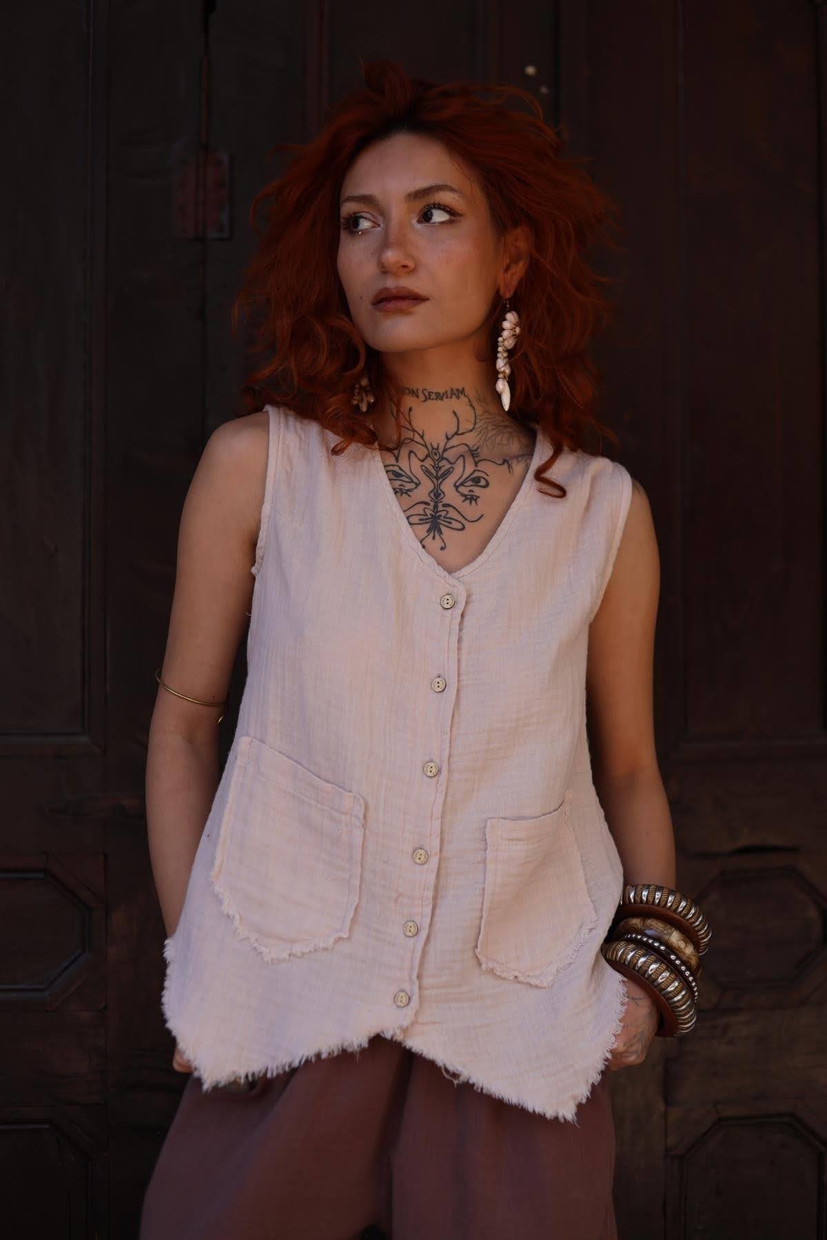 Krem Rengi Müslin Cepken Yelek