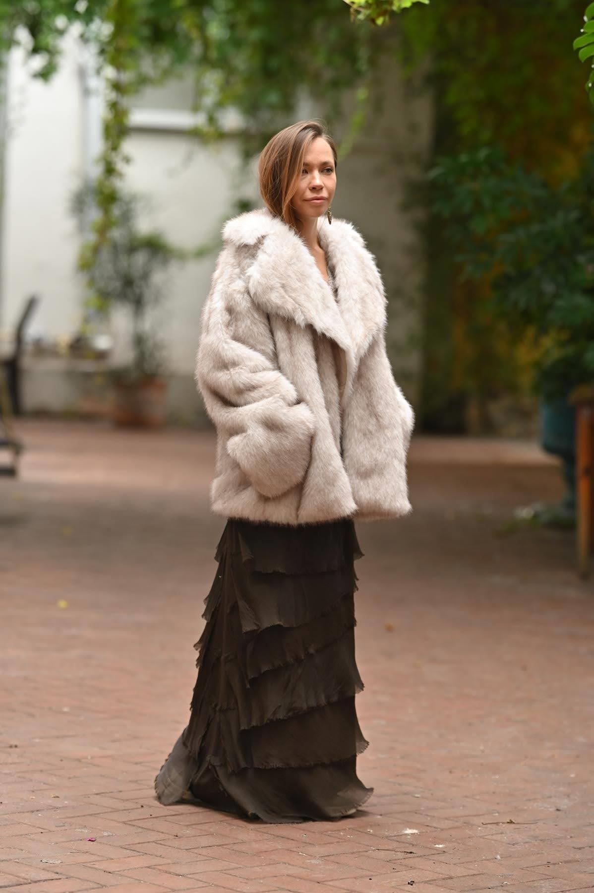 Krem Rengi Yakalı Kısa Kürk Kaban