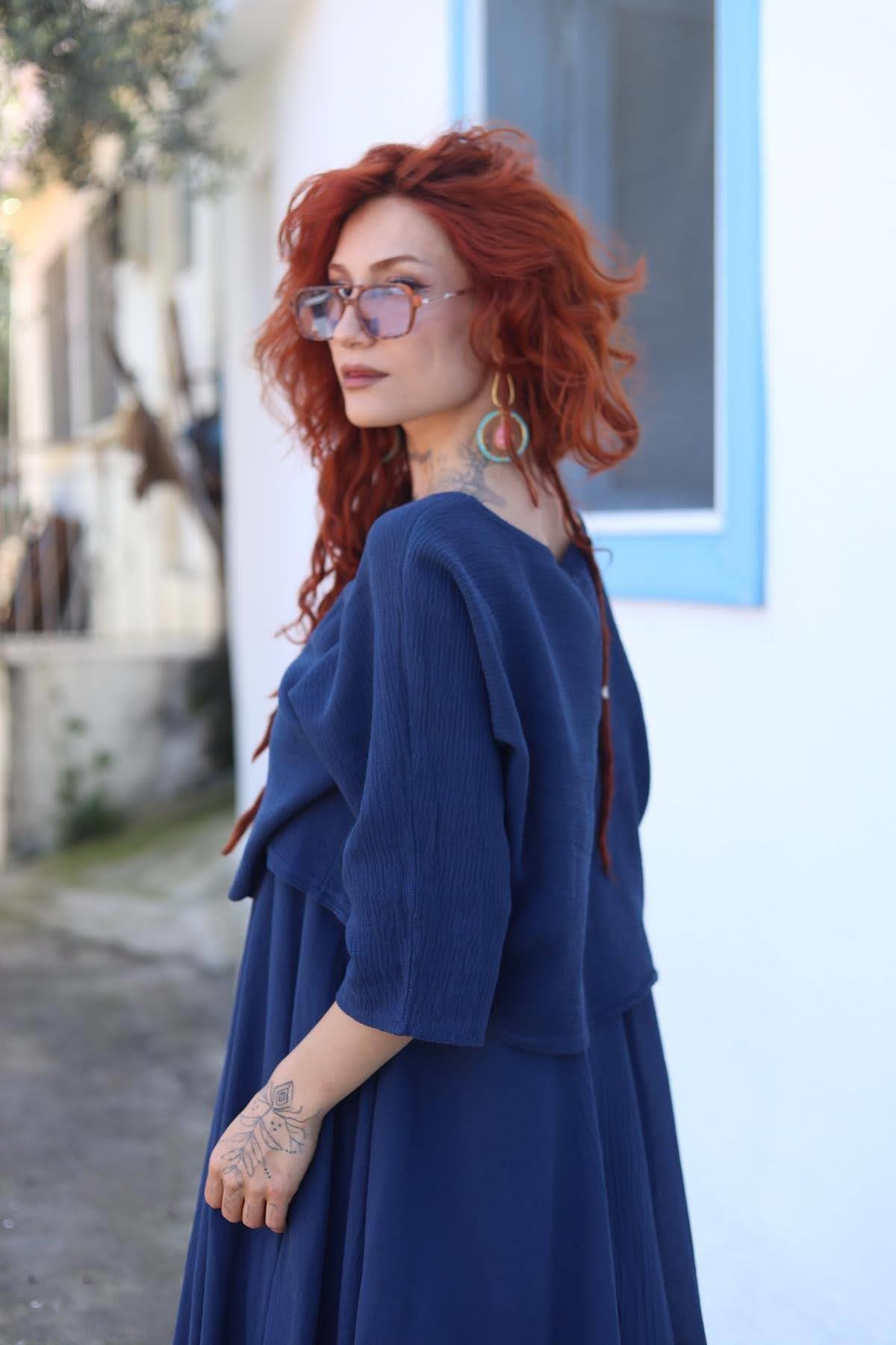 Lacivert Askılı Bluz Detaylı Elbise (KE-FAL-006-PA-LA-STD)