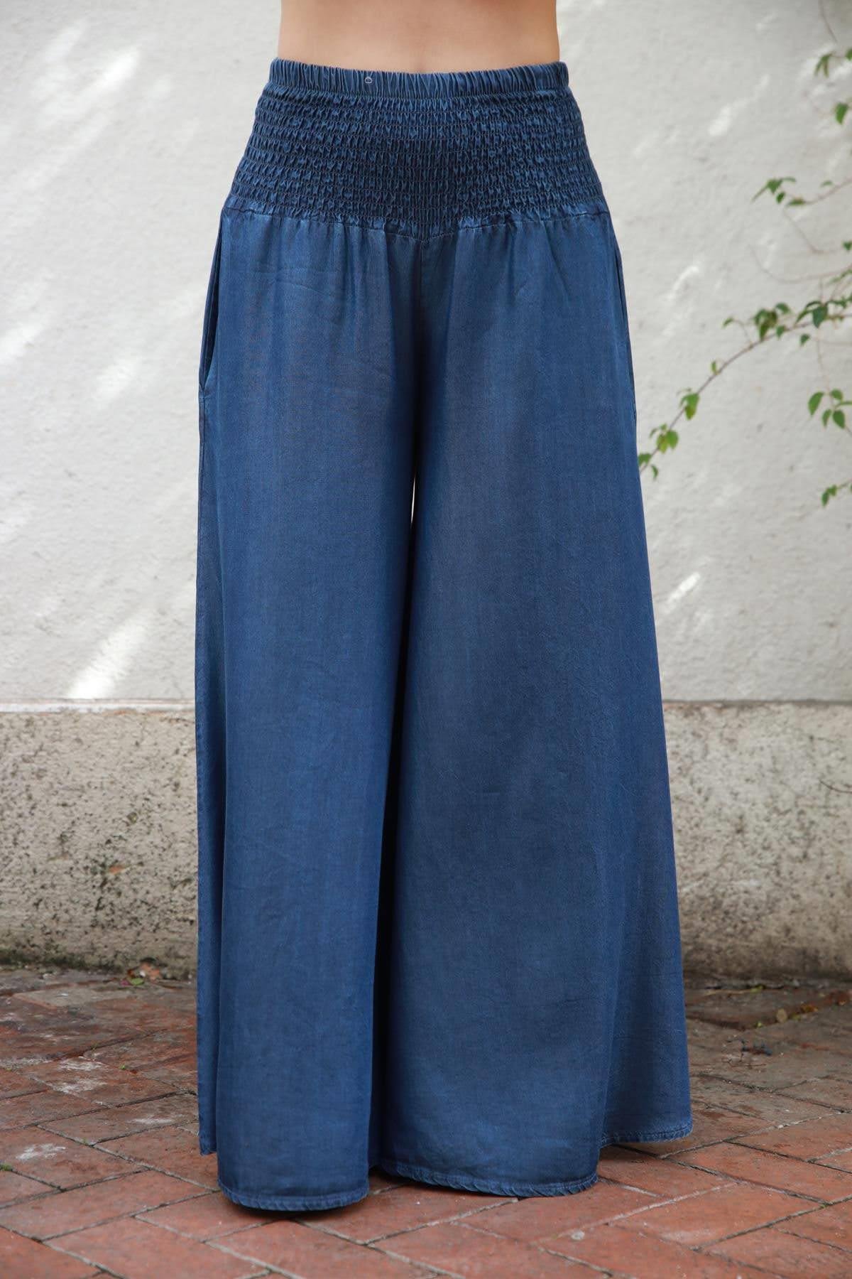 Lacivert Beli Gipeli Geniş Paça Tensel Kot Pantolon