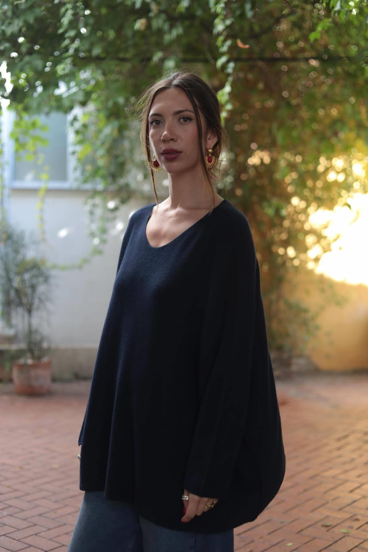 Lacivert Bisiklet Yaka Dikişsiz Bluz