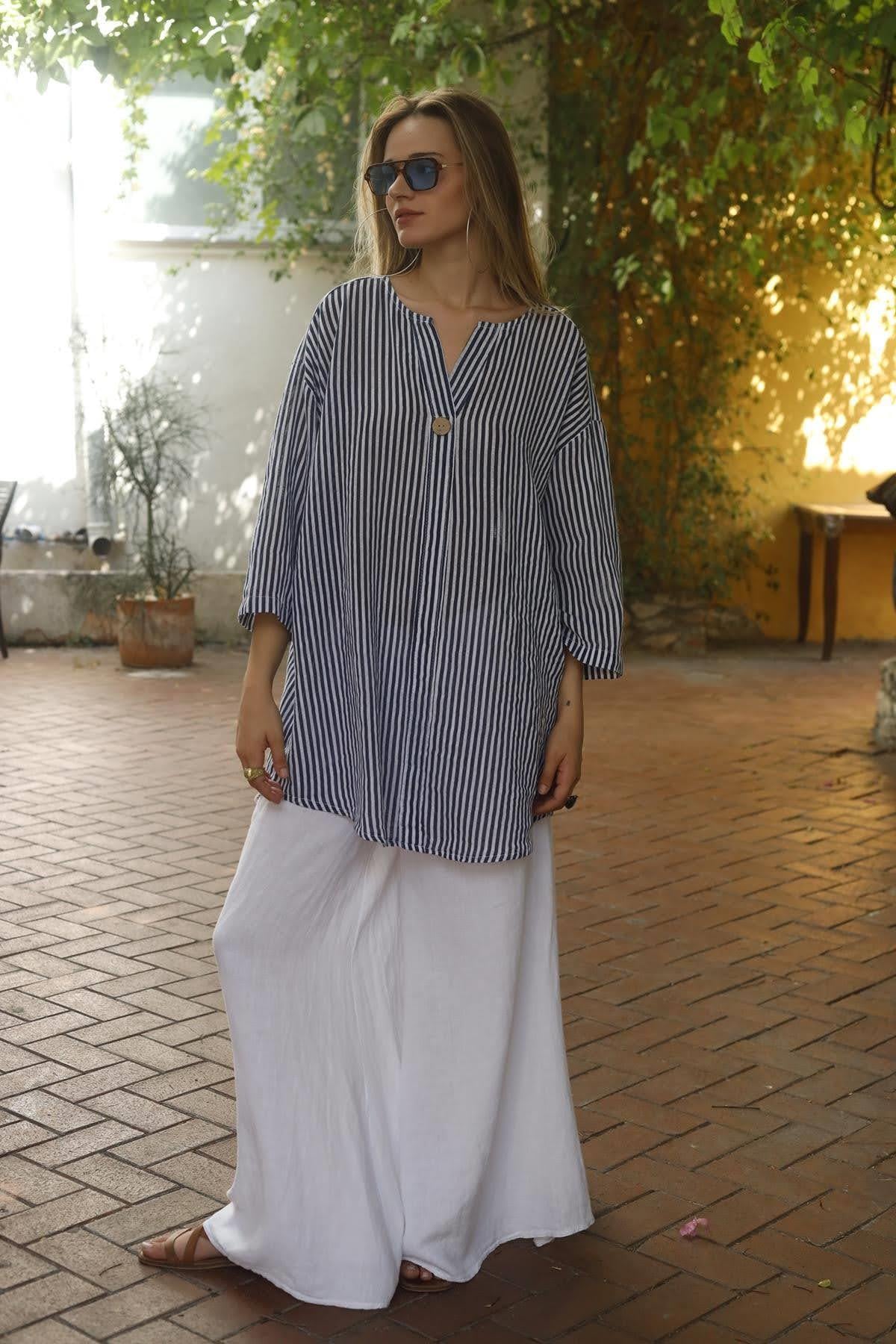 Lacivert Çizgili Tek Düğmeli Tunik (KTNK-PM-008-PA-LA-STD)