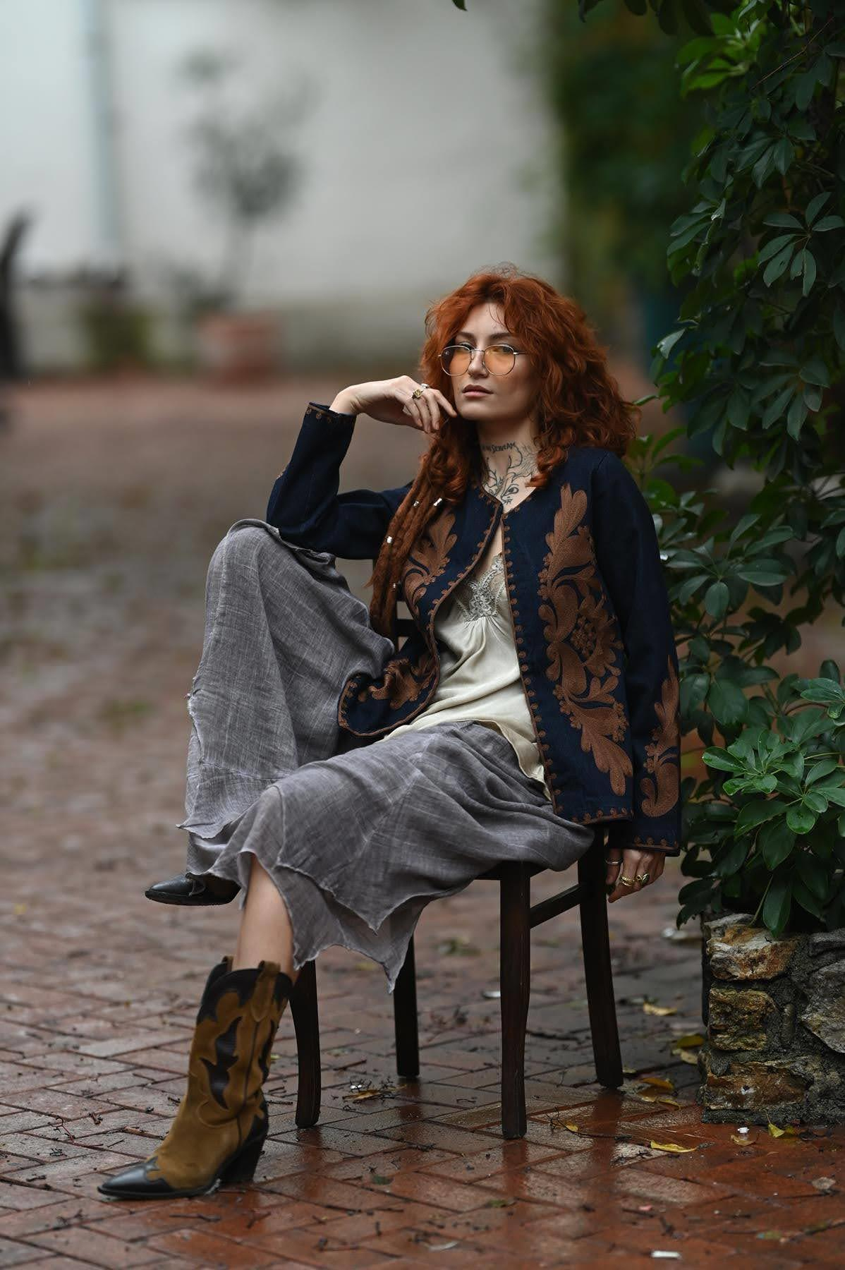 Lacivert İşlemeli Kot Ceket (KC-ESQ-006-PA-LA-S)