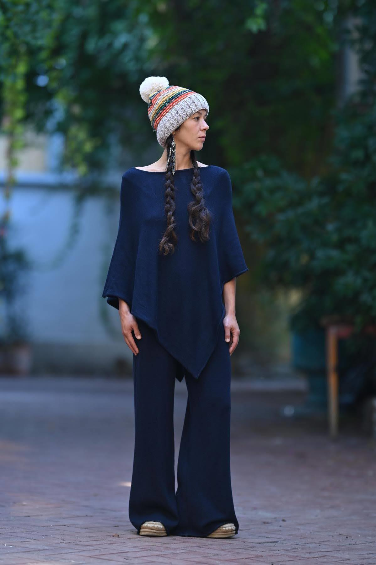 Lacivert Yumuşak Doku Panço ve Pantolon Takım