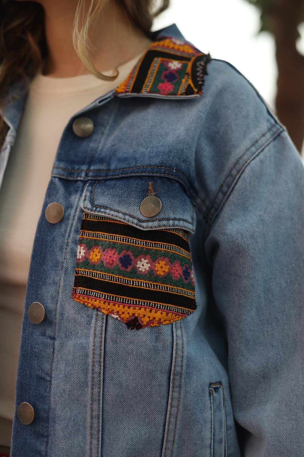 Mavi Antik İşlemeli Kot Ceket (KC-AS-PA-MA-STD-015)