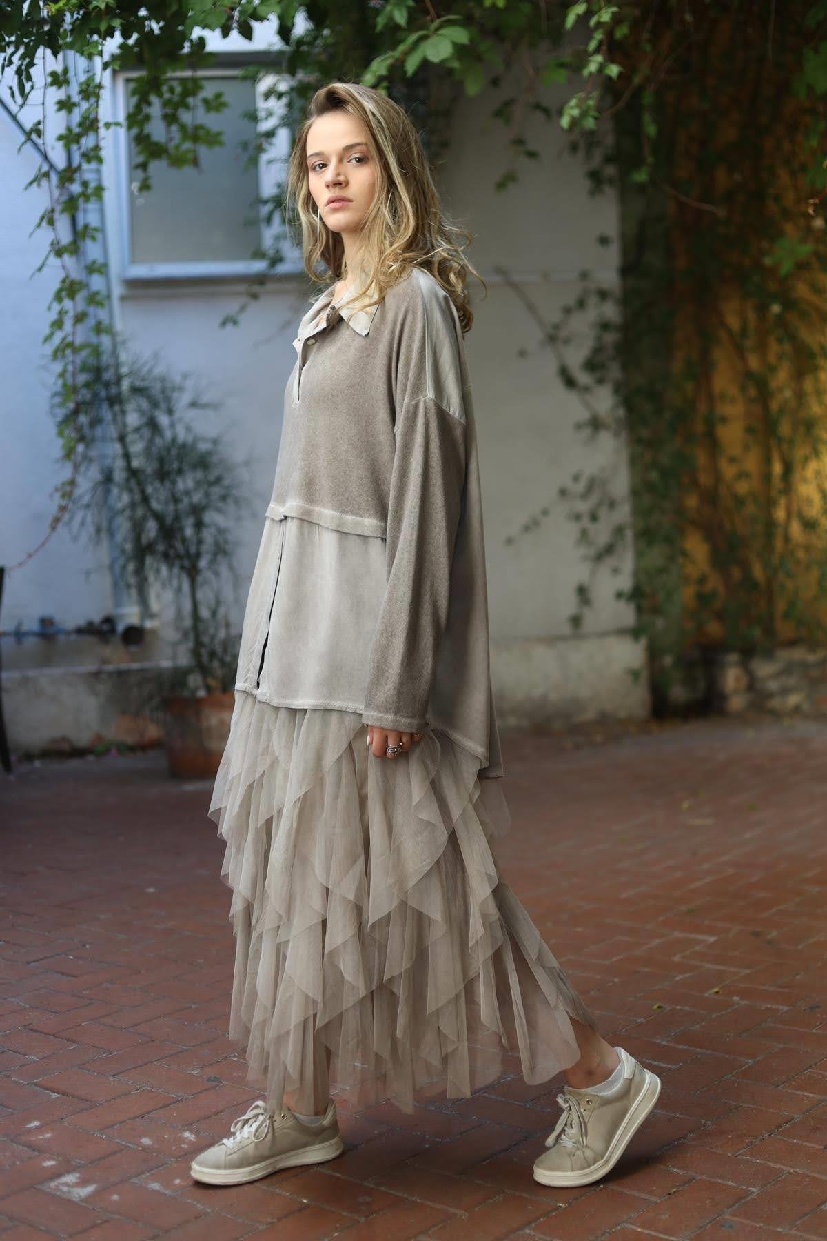 Mink Color Patched Shirt Blouse (KB-FAL-021-PA-VR-STD)