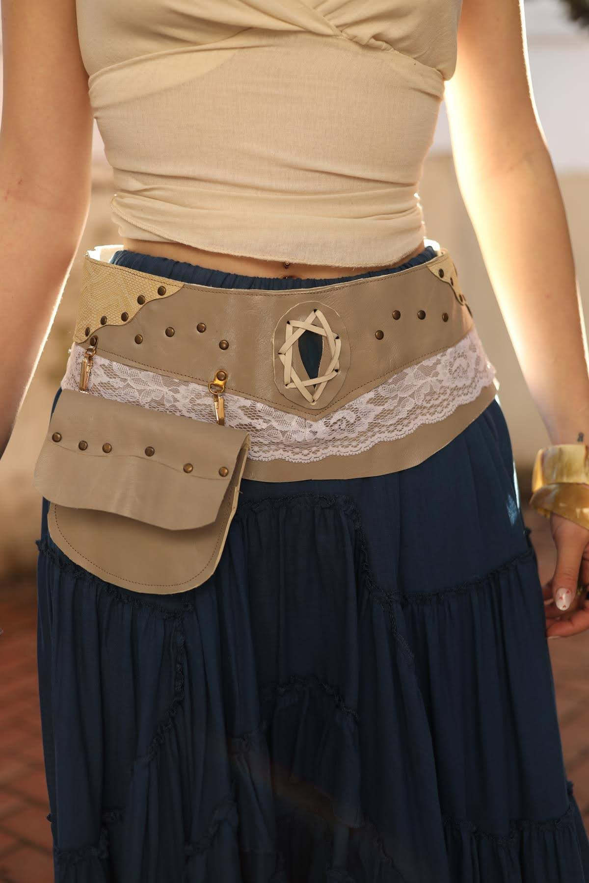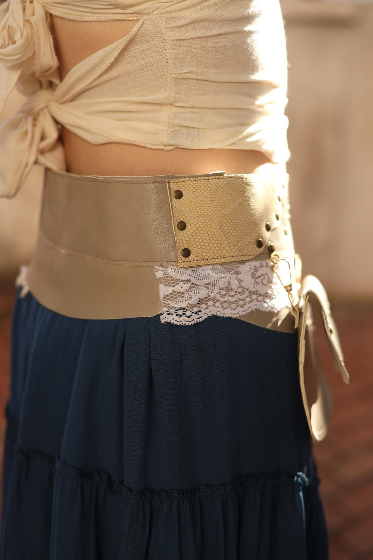Mink Color Pocketed Leather Belt