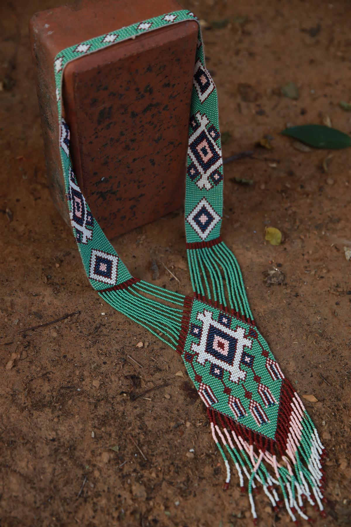 Mint Green Bead Knitted Tie Necklace