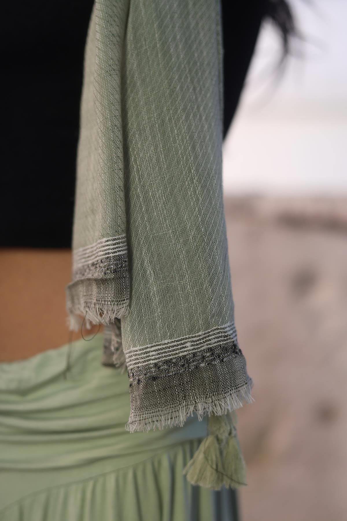 Mint Green Fringed Cotton Shawl (ASL-ZH-038-PA-MYE-STD)