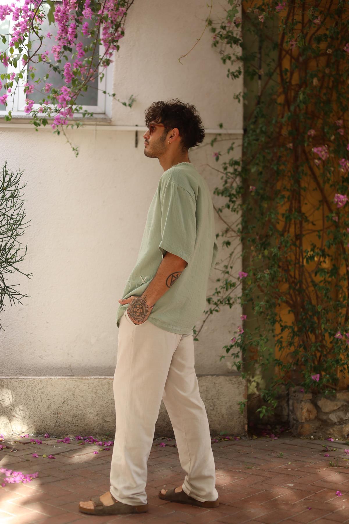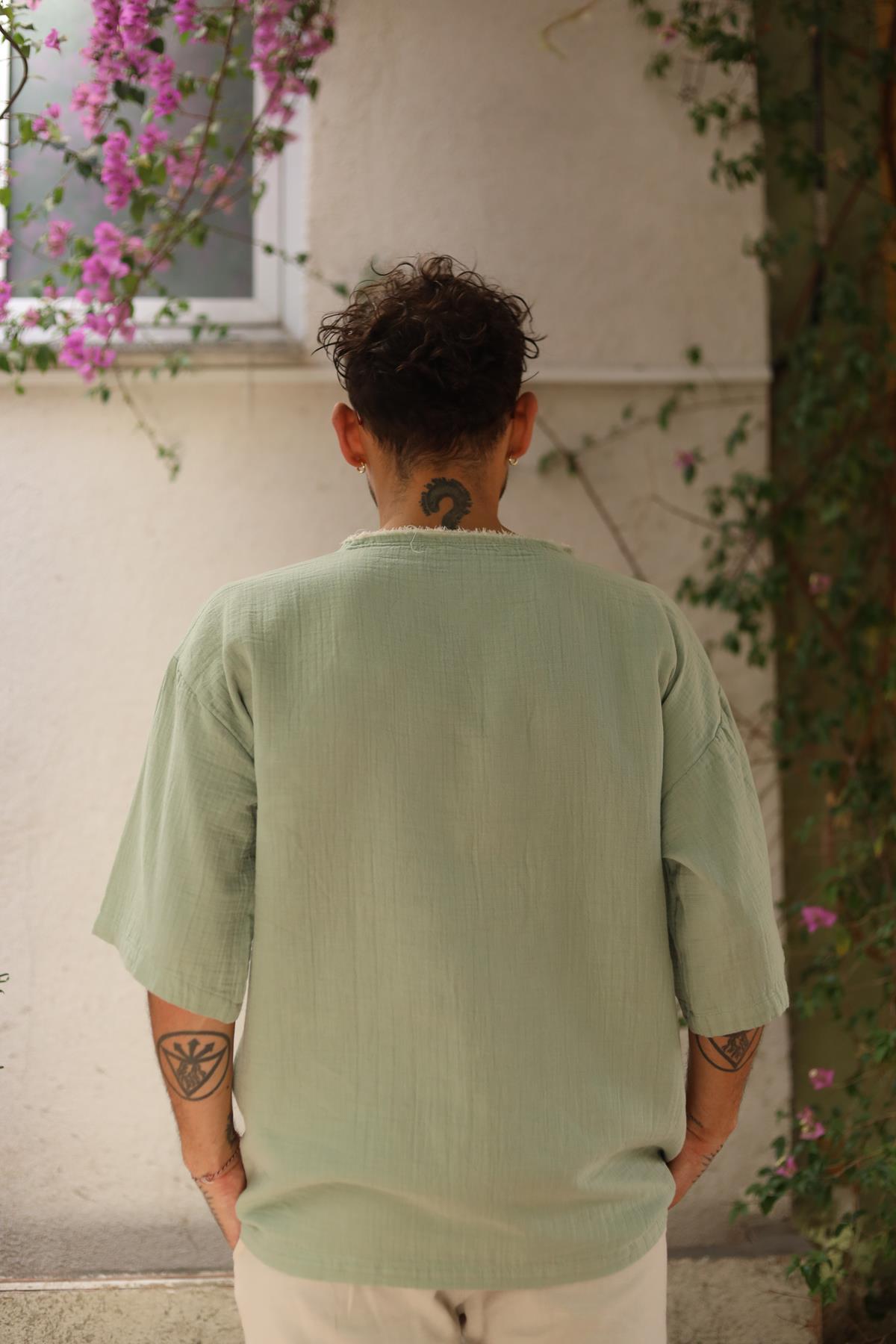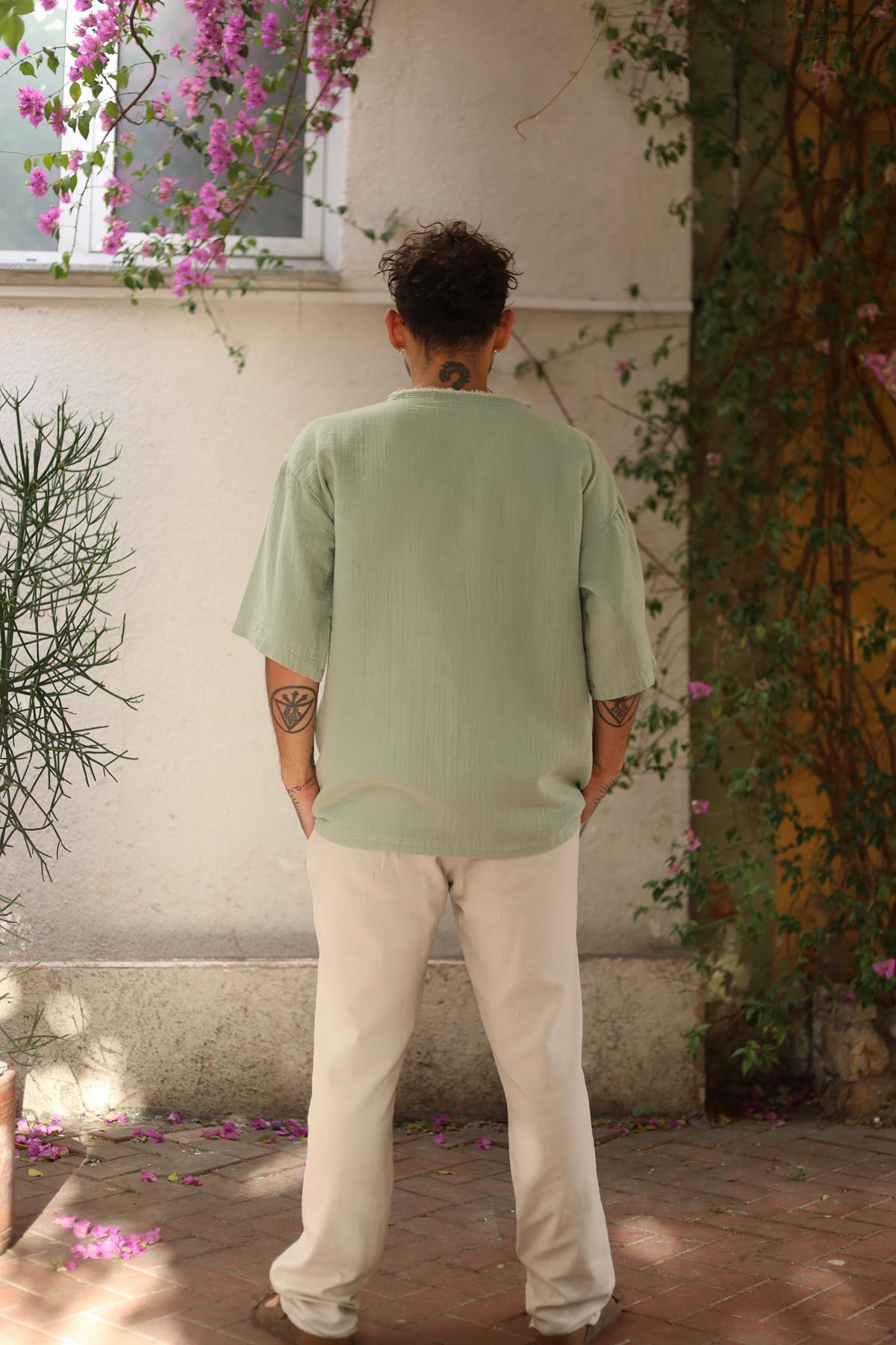 Mint Green Stitched Men's T-Shirt (ETS-WR-001-PA-MYE-STD)