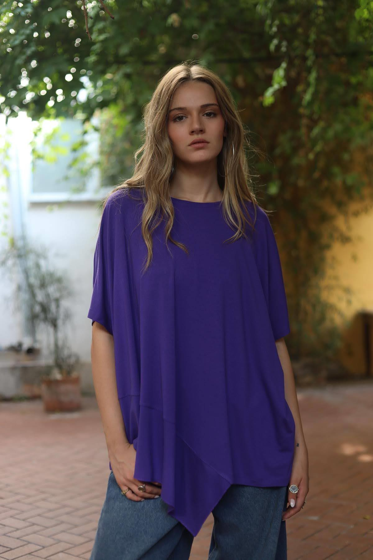 Mor Altı Parçalı Kısa Kollu Bluz (KB-LAM-006-VI-MO1-STD)