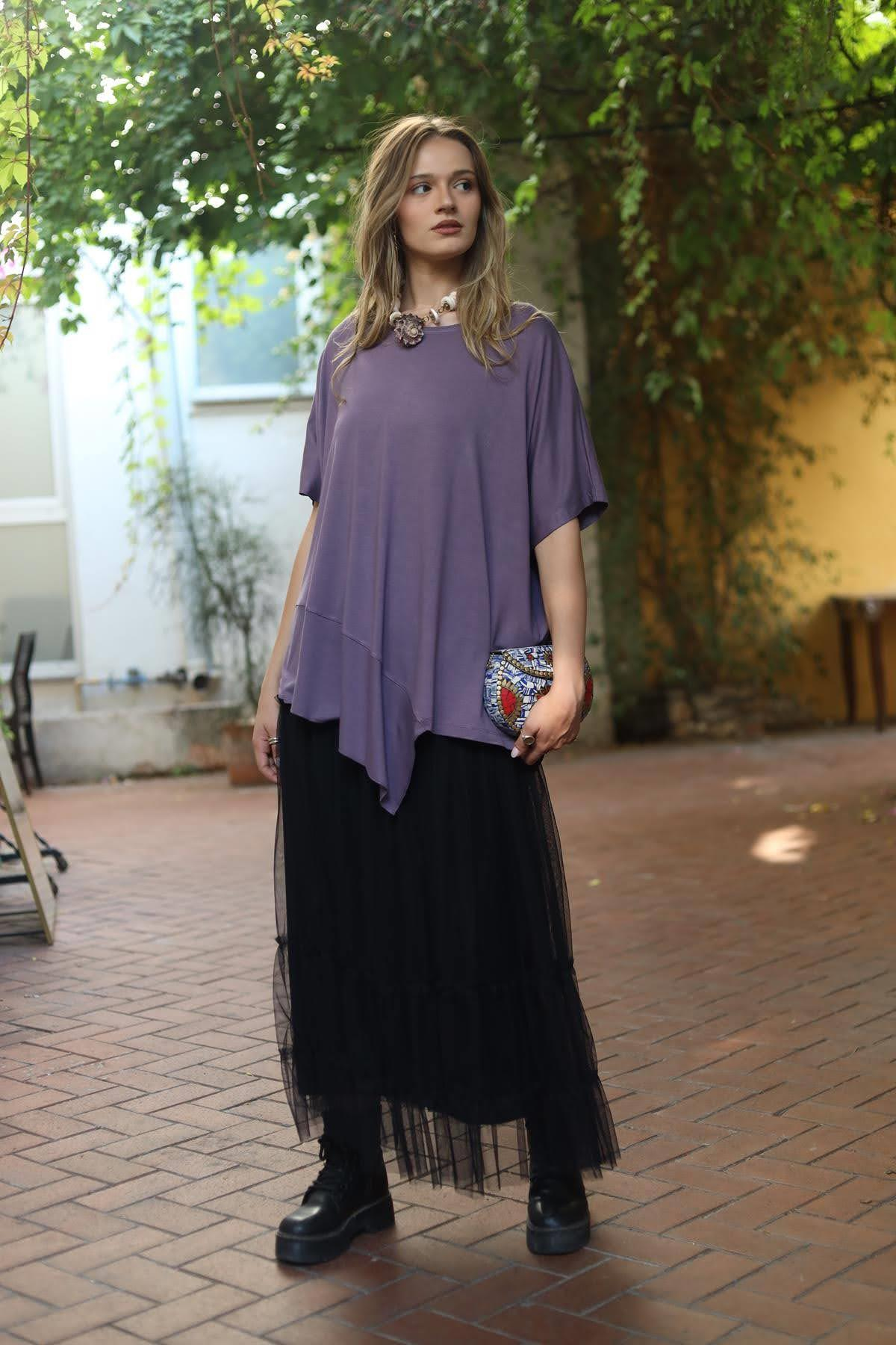 Mor Altı Parçalı Kısa Kollu Bluz (KB-LAM-006-VI-MO-STD)