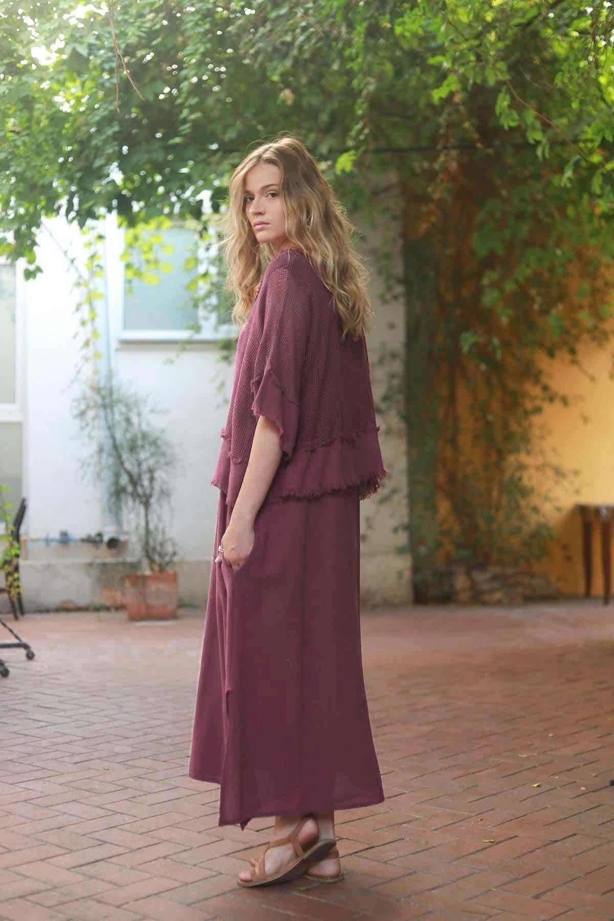 Mor File Bluz Detaylı Askılı Elbise (KE-PM-055-KTN-MO-STD)