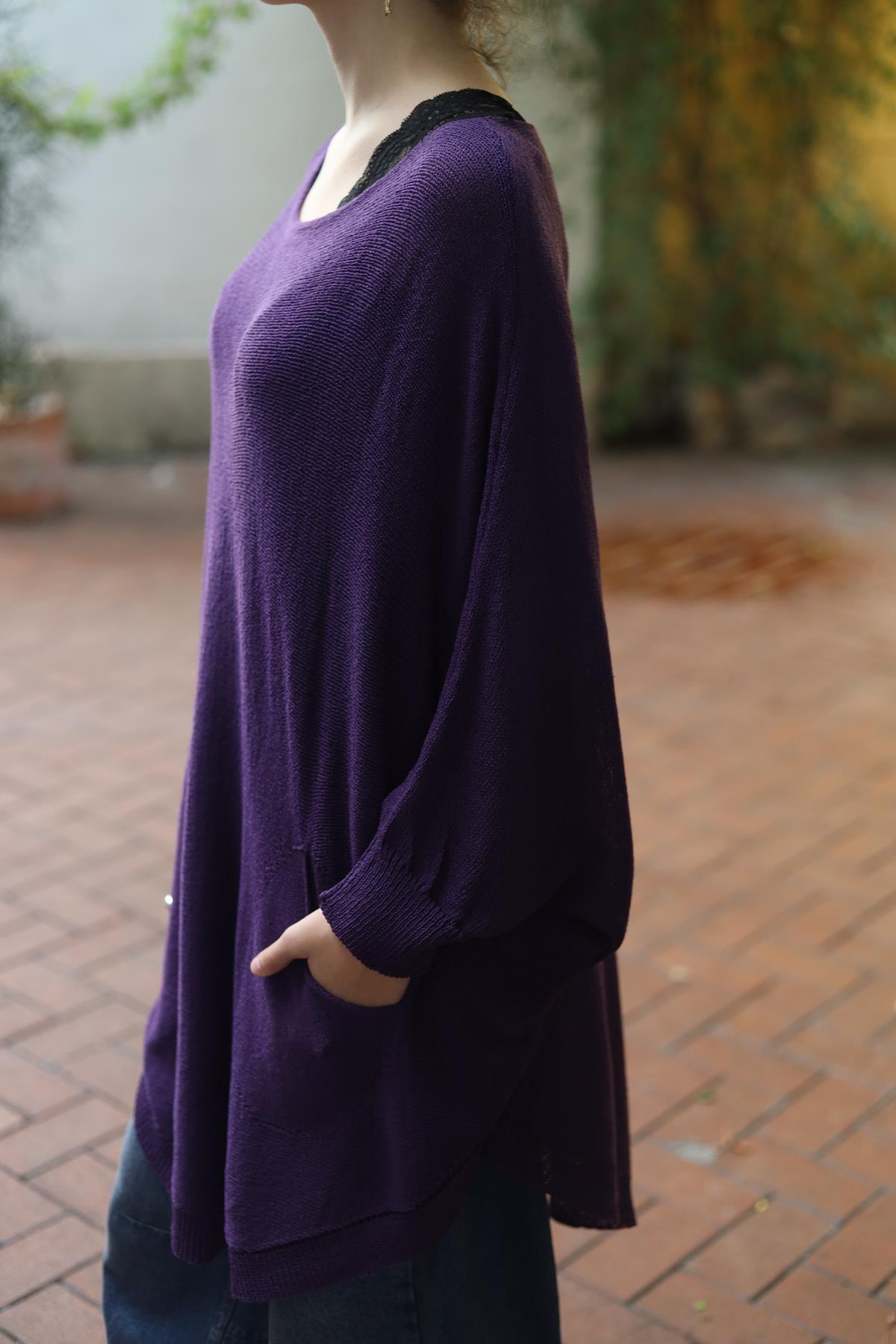 Mor Oval Kesim Cepli Triko Tunik (KTNK-LAM-009-AK-MO-STD)