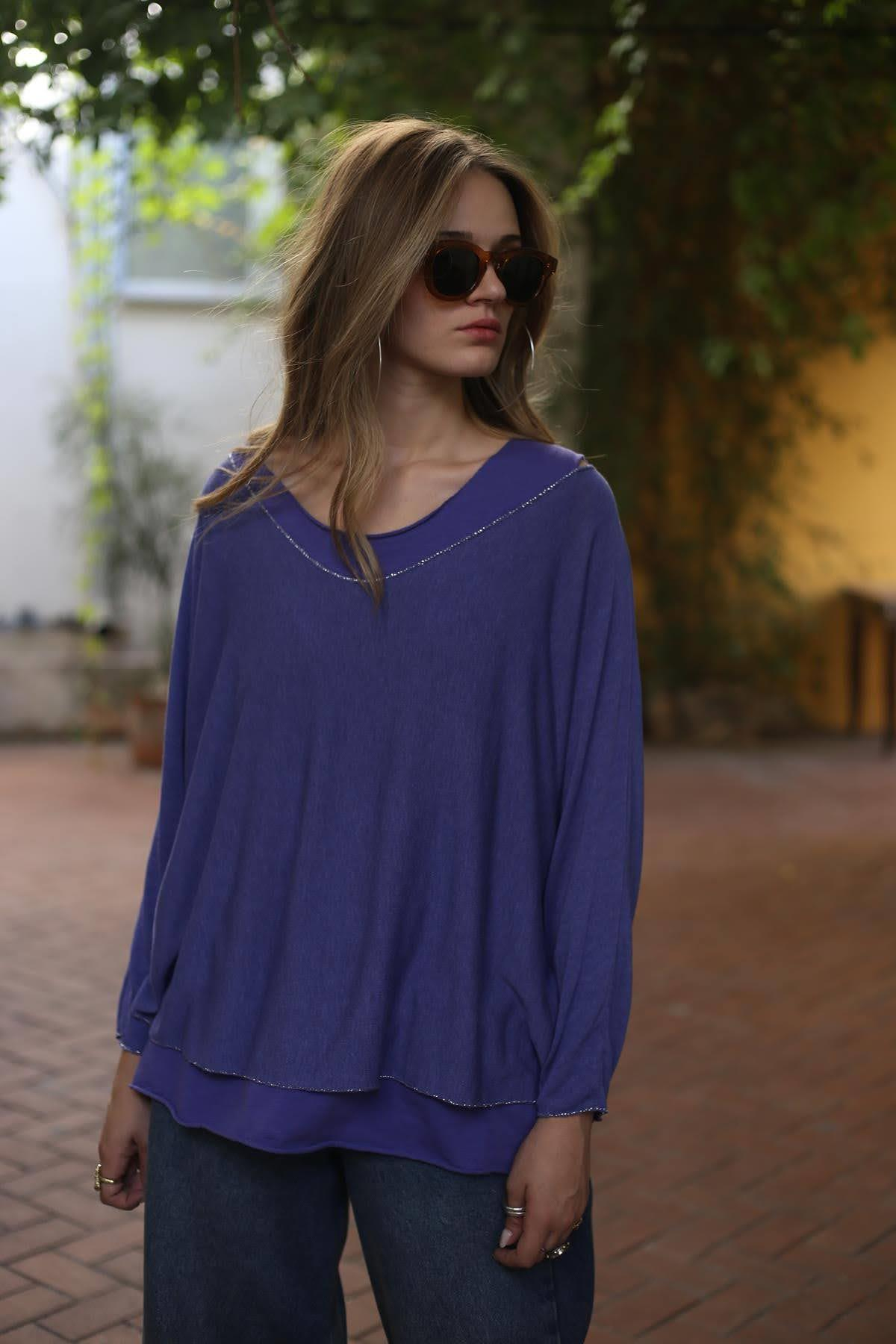 Mor Sim Detaylı Geniş Yaka Atletli Bluz (KB-PM-013-VI-MO-STD)
