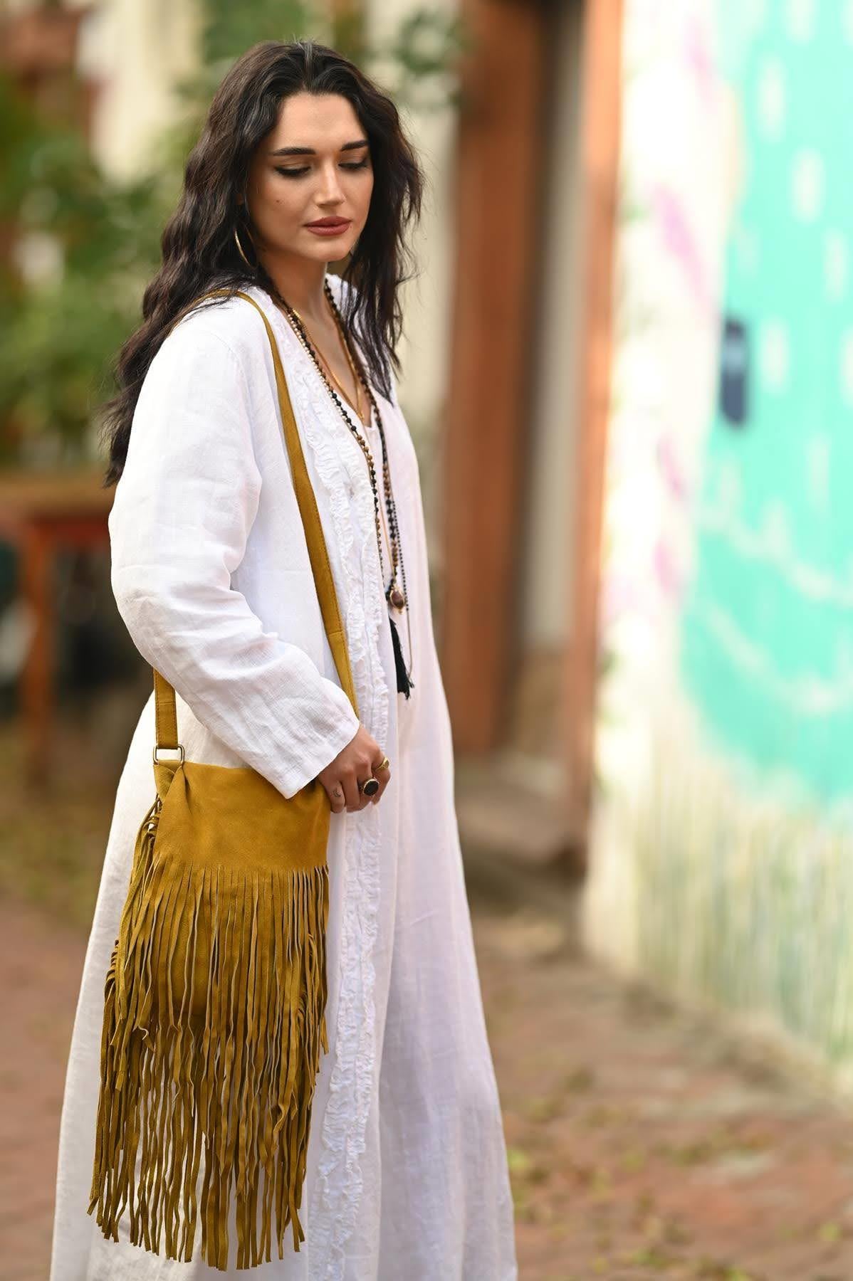 Mustard Color Tasseled Suede Leather Bag (ACNT-AS-014-DE-HAR-STD)
