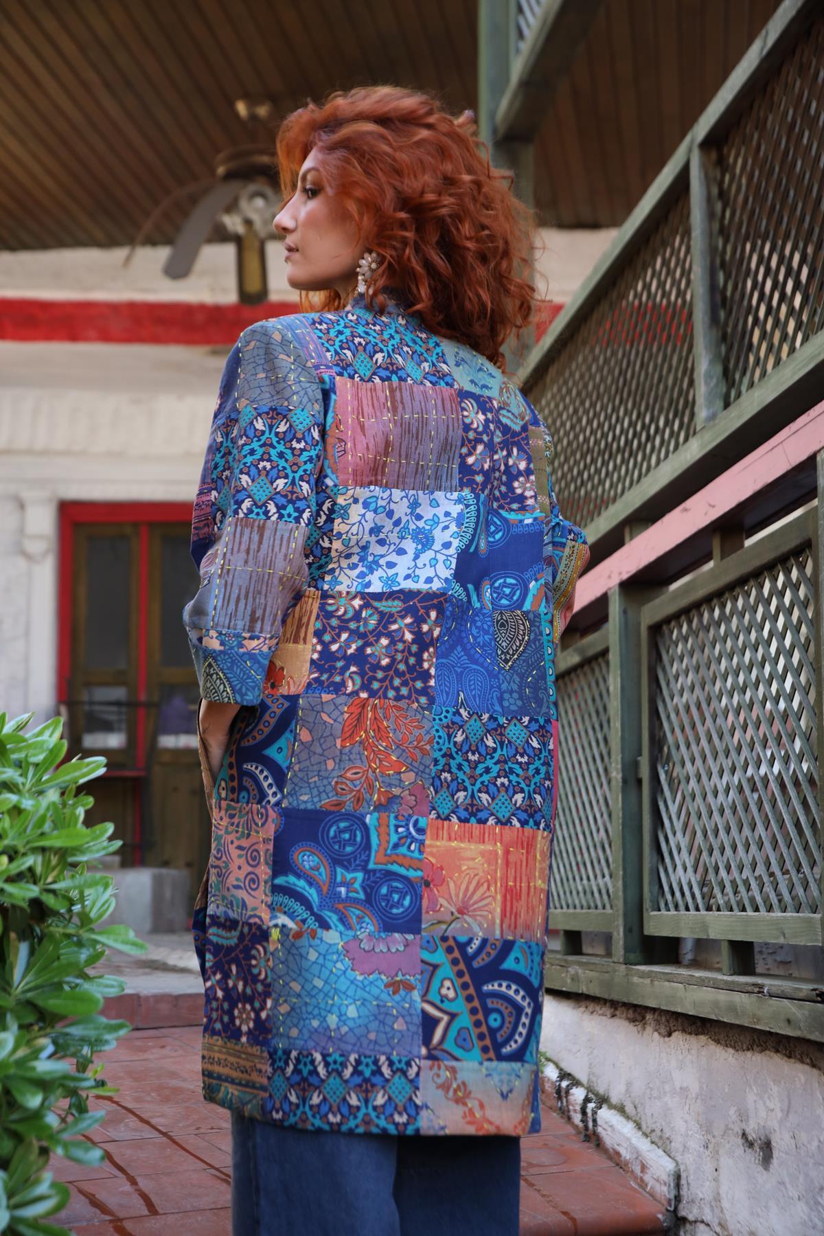 Navy Blue Authentic Embroidered Long Jacket (KC-TS-003-PA-LA1-STD)
