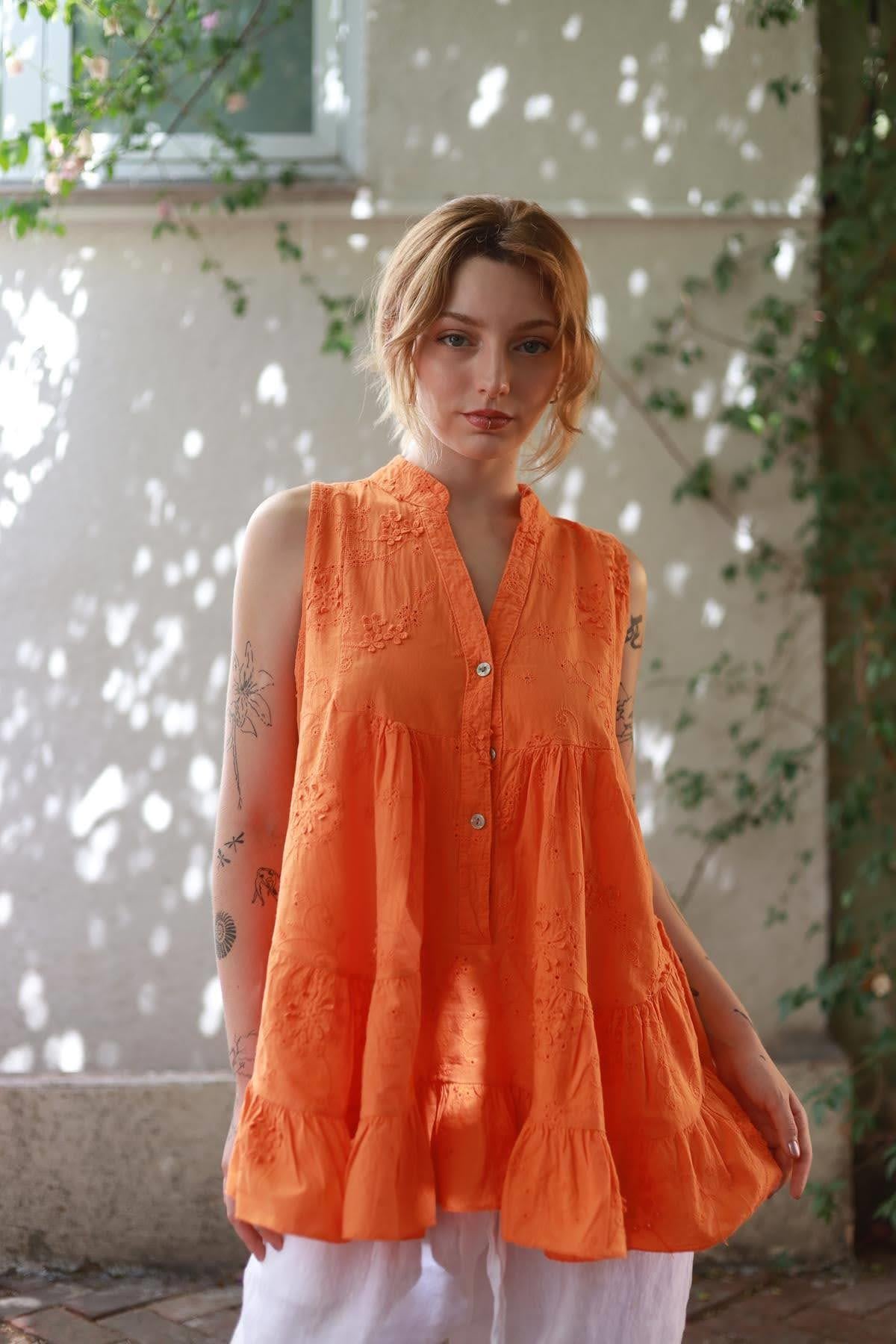 Orange Floral Embroidered Short Tunic (KTNK-PM-007-PA-TU-STD)