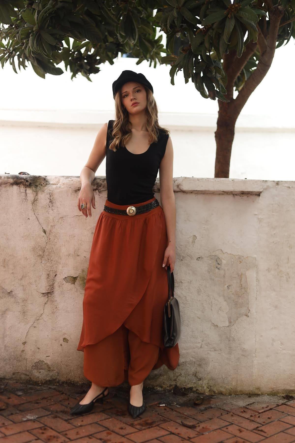 Orange Silk Harem Pants Free size, Fits for 36-44. Model Height and Weight: 1.72 cm - 54 kg Fabric: 100% Silk