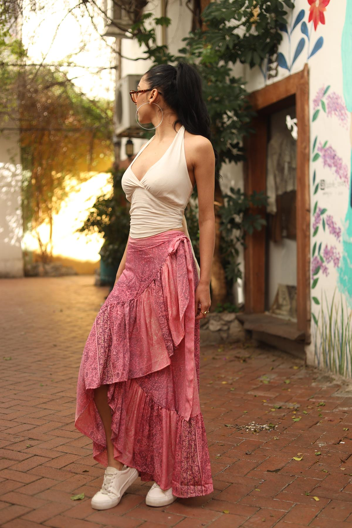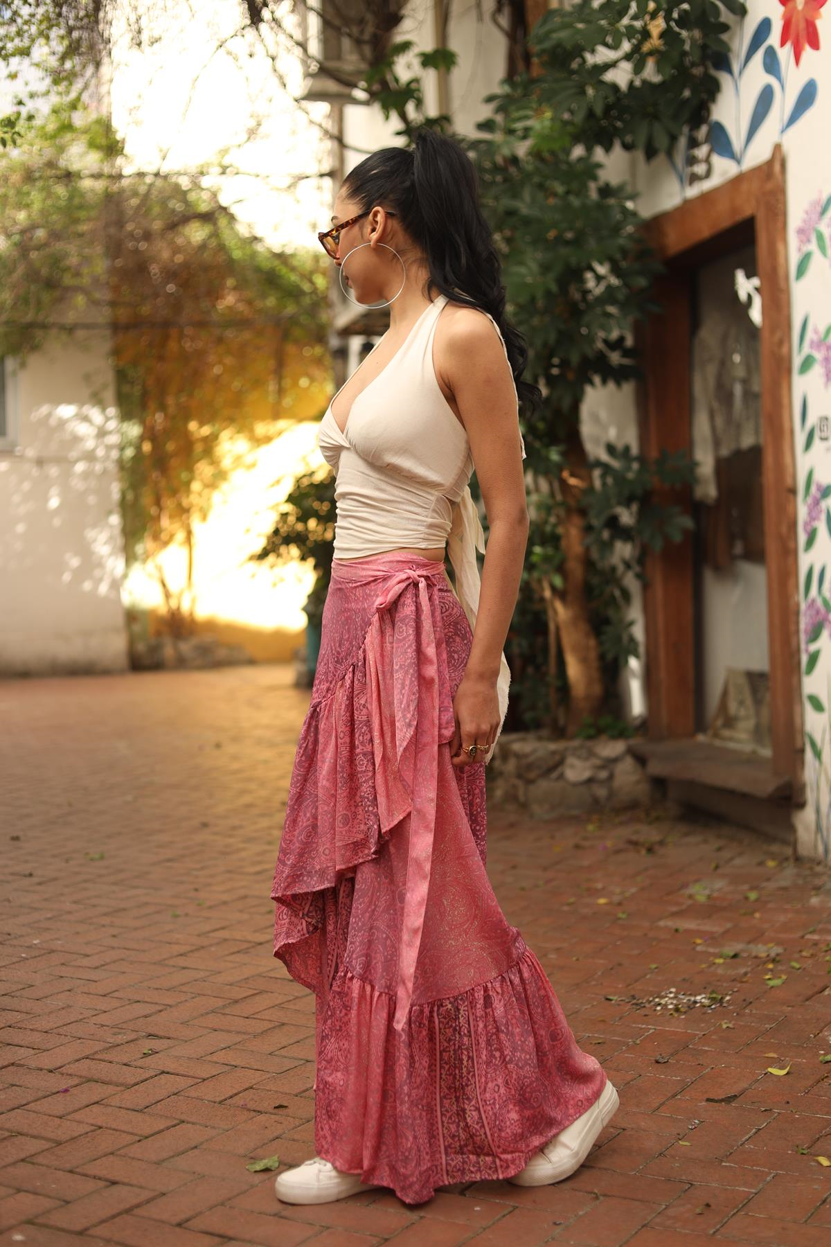 Pembe Volanlı İpek Anvelop Etek (KET-RMR-004-IP-PE-STD)