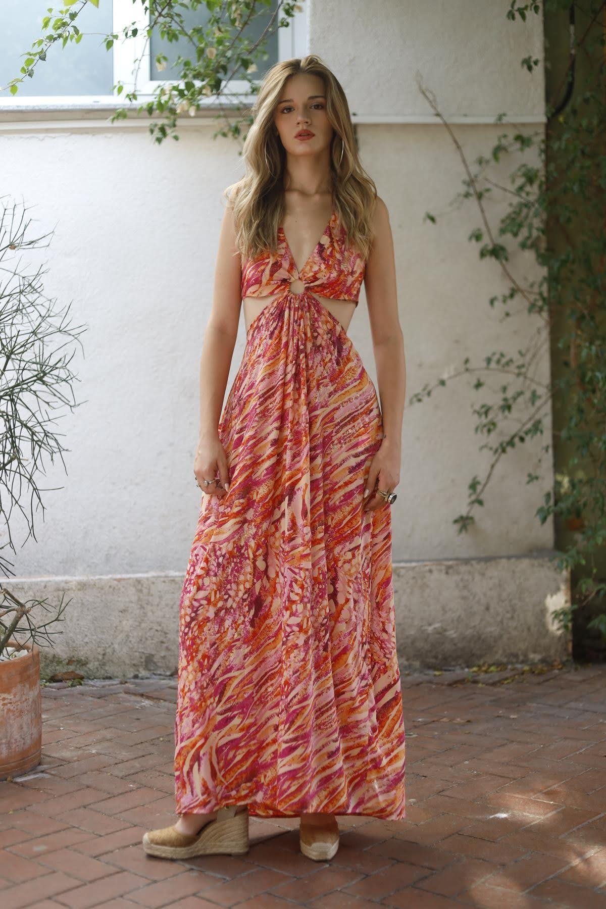 Pink Strappy Backless Silk Dress (KE-RMR-056-IP-PE-STD)